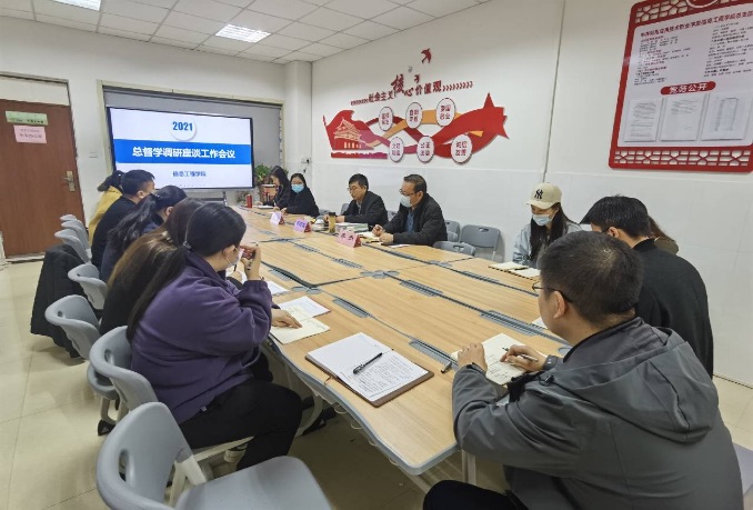 会议开始,王雷首先代表学院对苏万益总督学一行的到来表示了热烈的欢迎,并就参会人员、学院基本情况、机构设置、队伍建设、进行了简要介绍。苏万益总督学表示,希望以此交流为契机,了解各学院在建设和发展中存在的困难和亟待解决的问题,相互借鉴经验、拓宽工作思路,扎实推动教学工作顺利发展。各位与会教师根据岗位职责及业务领域进行发言,汇报了本人的心得体会和遇到的问题。
