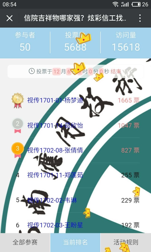 预赛部分为开放性题目,使用三维软件制作信息工程学院吉祥物,共收取来自两个专业四个班级合计123份作品,经过评委老师初步筛选,评出50份优秀作品进入网络投票环节,初赛成绩包括评委老师评分与网络投票两部分,最终30名选手突出重围,进入决赛。