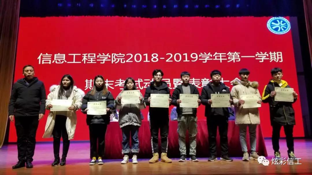 考试动员环节结束后,进行表彰环节,本次表彰主要表彰了信息工程学院五星个人奖,体育文化月先进个人奖,以及招生宣传特殊贡献奖,党总支书记杨明杰老师宣读获奖名单,他首先对获奖同学表示衷心的祝贺,并充分肯定了他们在各项活动中的充分表现,号召全体同学向先进学习,同时也提出了新的希望,愿同学们在以后的活动中创造更多的辉煌,随后学院院长王雷老师、副院长崔琳老师、党总支书记杨明杰老师分别为计算机1702刘岩,计算机1706李昌鹏,网络1702王晓慧等获奖同学颁发证书。提出这些同学都是我们信息工程学院同学学习的楷模,今后的学习生活中要向获奖同学学习。