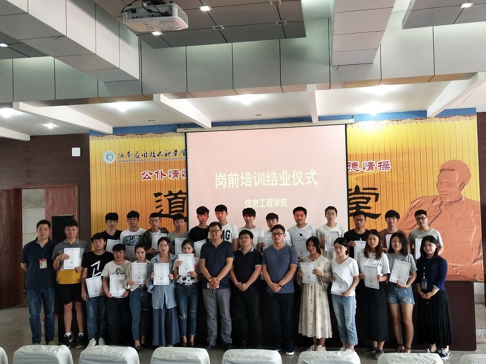 2018年5月29日,信息工程学院16级艺术专业学生在B楼学术报告厅进行了一场别开生面的岗前培训结业仪式。