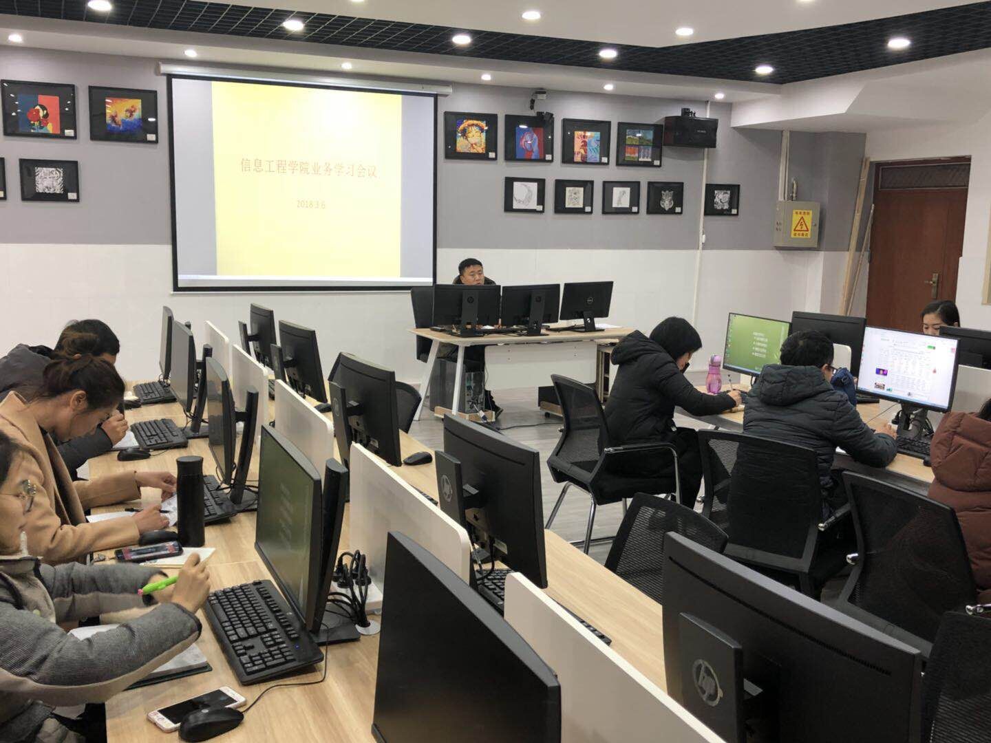 2018年3月6日,信息工程学院在E414实训室召开新学期第一次业务学习会议。