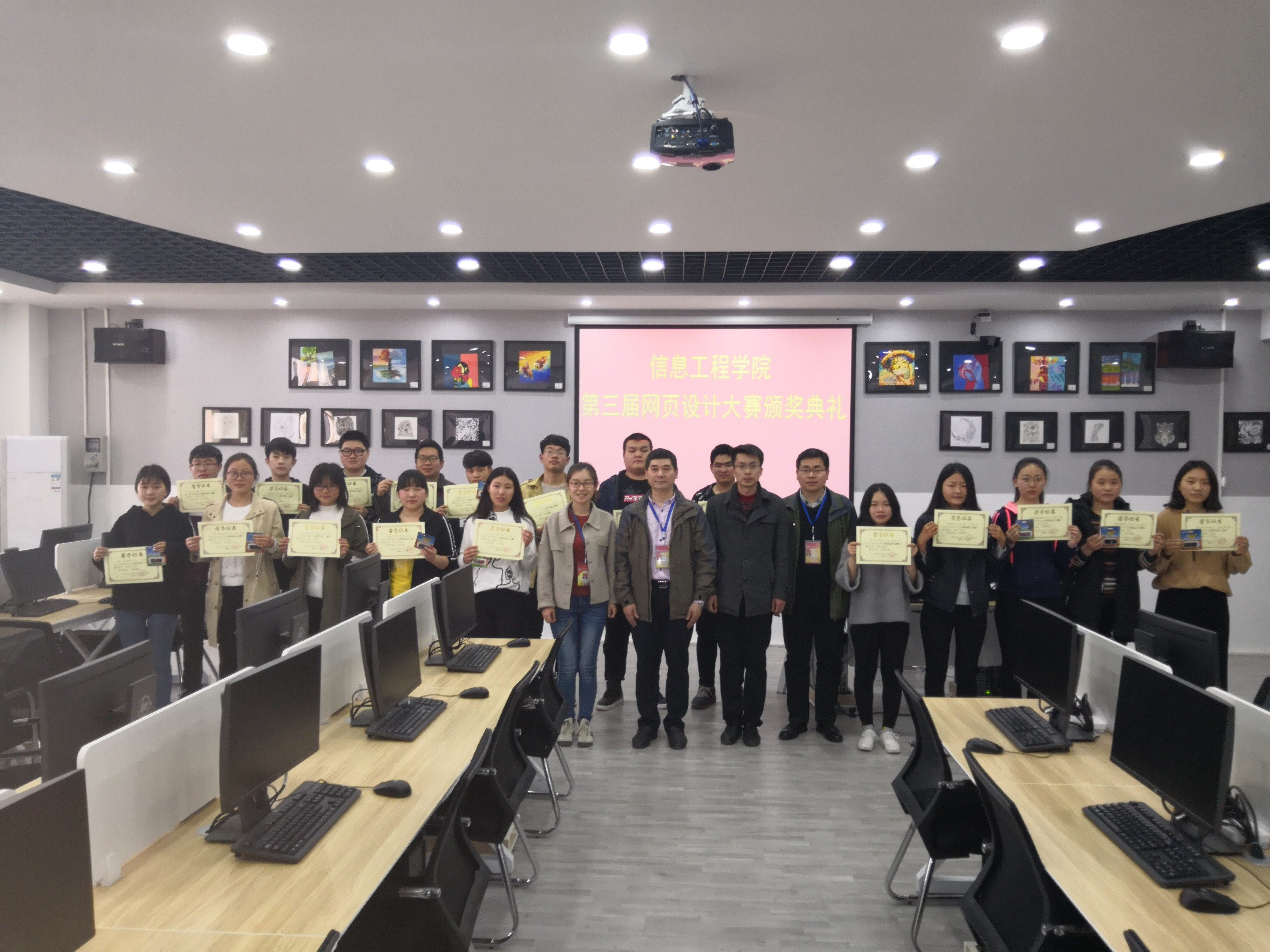 ? ? ? 2018年3月14日下午5点,计算机网络教研室在E414举行了第三届网页设计大赛的颁奖仪式,教研室主任张振平老师、郭璇、任立峰、周少珂等老师参加了颁奖。网络1601班李明凯等21位同学分获一二三等奖,并获得学院精心为大家准备的精美奖品。同学们非常激动,纷纷表示将在今后的学习中不断努力!