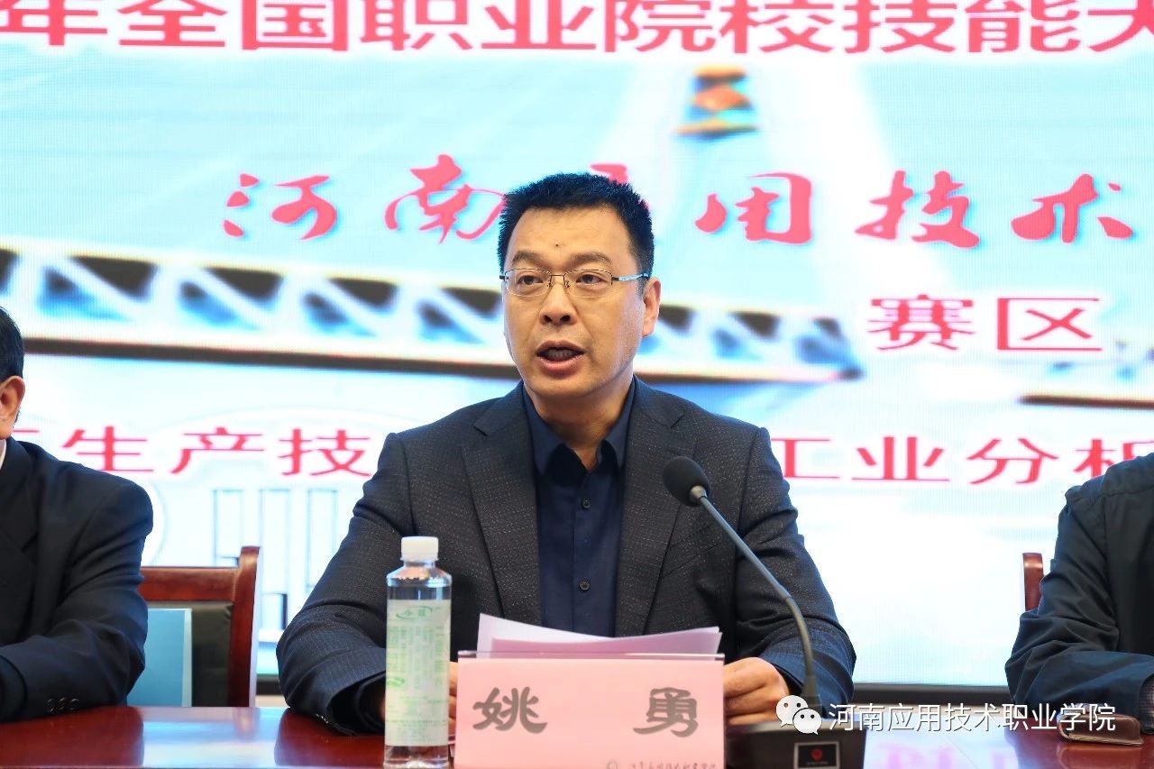姚院长致开幕词,他代表学校向出席开幕式的各位领导和专家,向各校的领队、指导教师和参赛选手表示热烈的欢迎!姚院长指出,党中央、国务院历来高度重视职业教育,以习近平同志为核心的党中央把职业教育摆在突出位置、提出明确要求、寄予殷切希望。希望广大学子以顽强拼搏的精神,迈出扎实奋斗的步伐,为中华民族伟大复兴中国梦作出自己应有的贡献,希望广大教师按照有理想信念、有道德情操、有扎实学识、有仁爱之心的要求,努力成为既能担任理论教学,又能培养学生实践技能的双师型教师。为培养数以亿计的高素质劳动者和技术技能人才而不懈努力。
