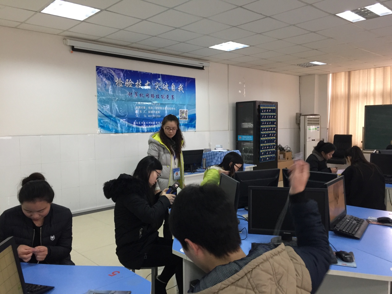 为了检测学生对使用华为网络设备搭建网络和对设备调试的掌握情况,营造一种浓厚的学习氛围,丰富学生的课余生活和提高同学们学习计算机网络的热情,以适应当前的就业形势,网络教研室举办了2016-2017学年第一学期计算机网络竞赛,本次竞赛报名68人,分初赛和决赛两个阶段,最终计算机1501班卢哓哓等19名同学取得了优异的成绩。