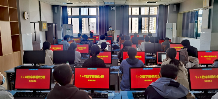 近期,信息学院将根据学生报名考证情况进行编班、培训,确保1+X数字影像处理认证考试顺利进行。