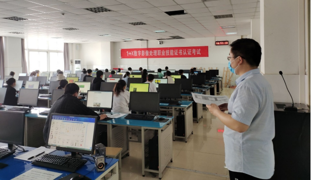 为贯彻落实《国家职业教育改革实施方案》《关于推动现代职业教育高质量发展的意见》文件精神,积极推进“学历证书+若干职业技能等级证书”制度试点工作,2022年5月7日下午,信息工程学院组织了动漫制作技术专业和视觉传播设计与制作专业20级100名学生参加了“1+X”数字影像处理职业技能等级证书考试。