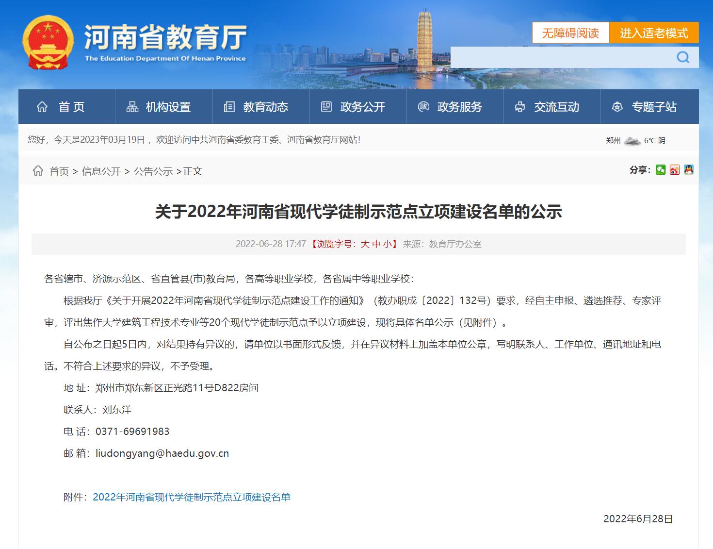 信息工程计算机网络技术专业获得2022年河南省现代学徒制示范点立项
