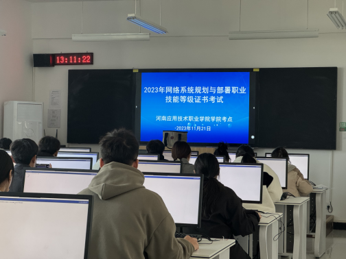 2023年11月21日下午14:00-16:00,中锐1+X网络系统规划与部署职业技能等级证书(中级)认证考试在我院开封校区C303实训室顺利进行。