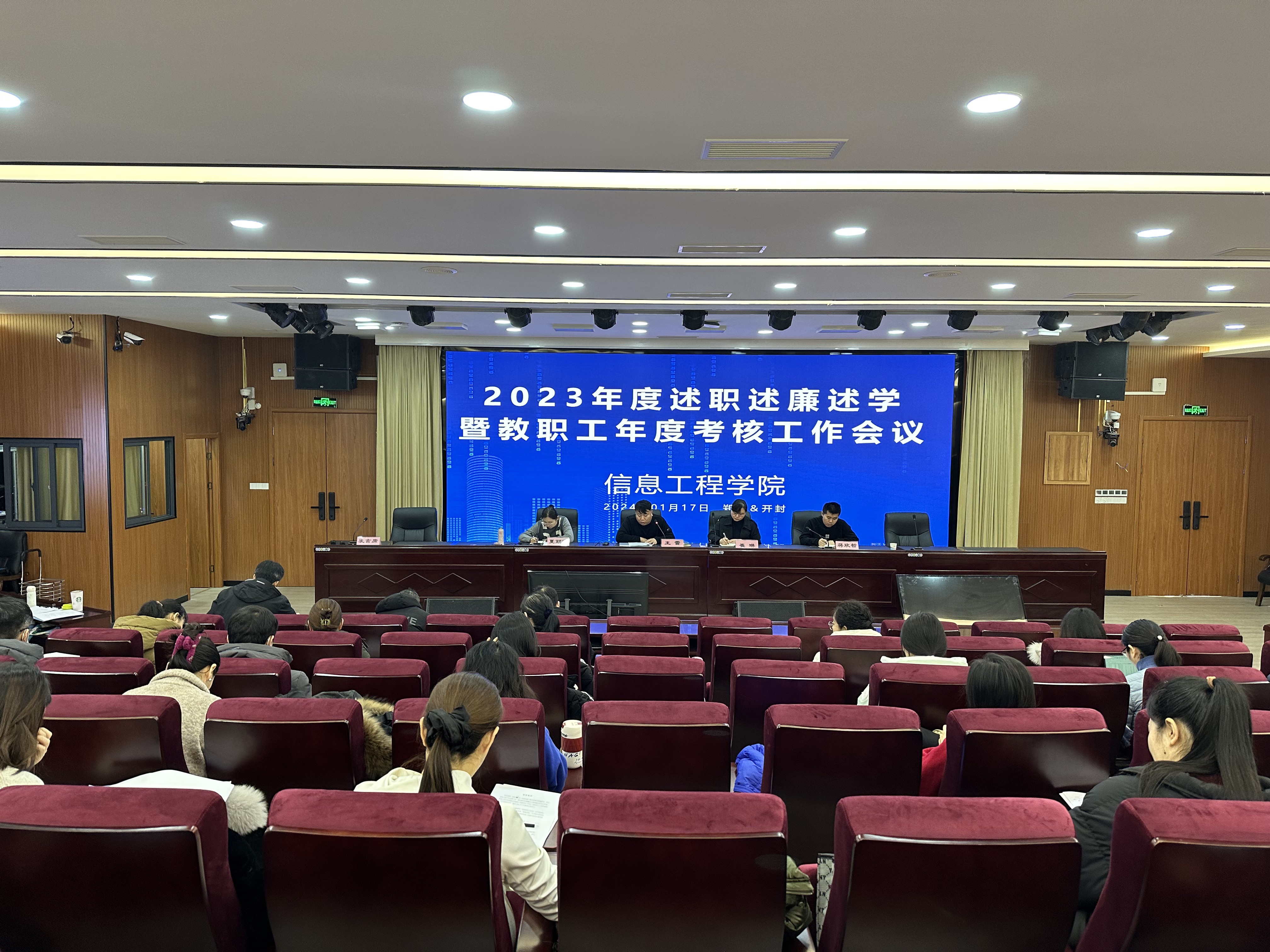 1月17日,信息工程学院在学校学术报告厅召开2023年度教职工述职述廉述学大会。全体教职工参加会议,学校相关管理部门领导到会指导。会议由副院长夏丽珍主持。