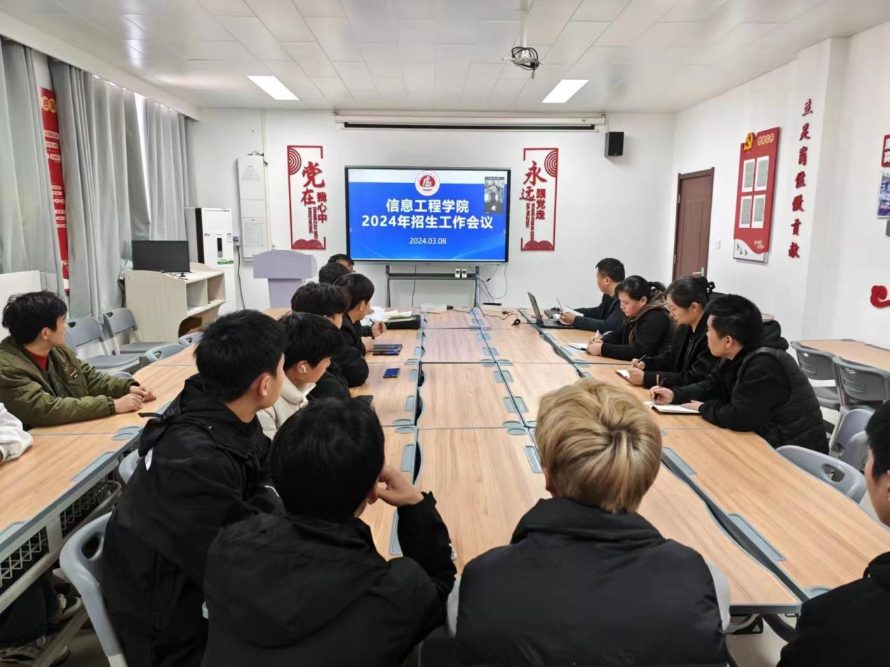 3月8日,信息工程学院在郑州校区A514、开封校区C314同步召开了2024年春季招生工作会议,参加此次会议的有学院院长王雷、书记崔琳、副院长齐峰、副院长夏丽珍、副书记蒋欣哲、学院负责招生的老师和 “爱回母校、逐梦应院”主题社会实践活动的学生。会议由学工办主任常昆主持。