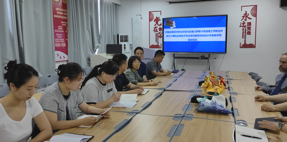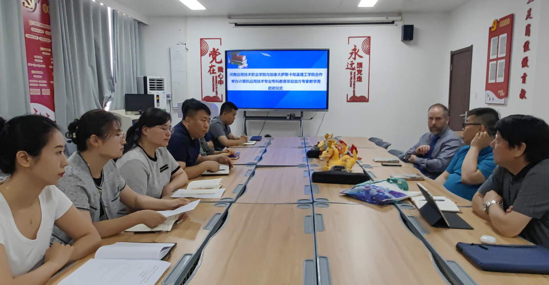 5月27日上午,信息工程学院为到校开展集中授课周的加拿大外籍教师Jason Schmidt和Alex Wang举行欢迎会。校科研外事处处长袁清香、我院总支书记崔琳、院长王雷、总支副书记蒋欣哲、副院长夏丽珍、党政办主任付媛冰及教师代表曲宏阳参加了此次见面会。