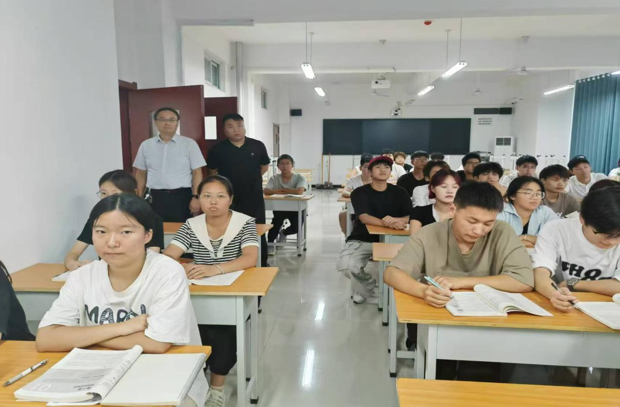 9月2日开学第一天,校党委书记闫俊山、副校长黄振中、教务处处长孙勇到我院进行开学首日的教学检查及现场指导,学院党总支书记崔琳和院长王雷陪同检查并向领导汇报了相关工作。