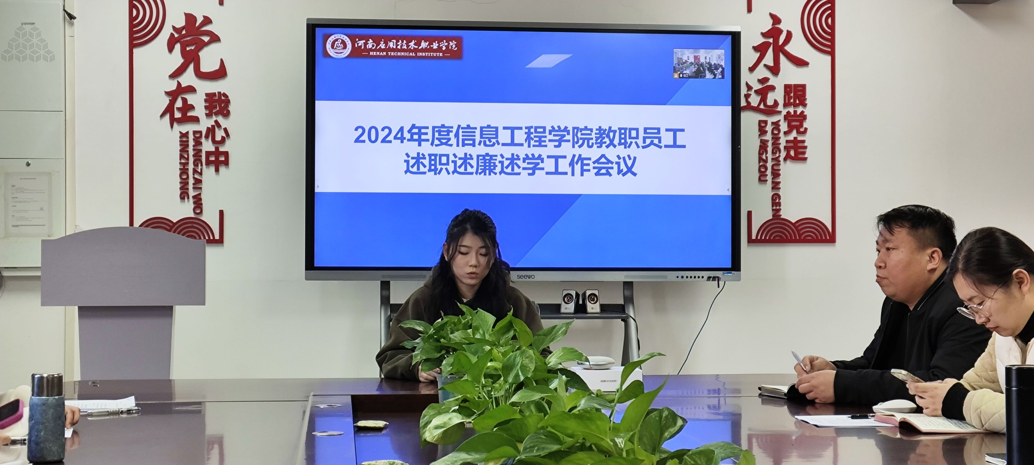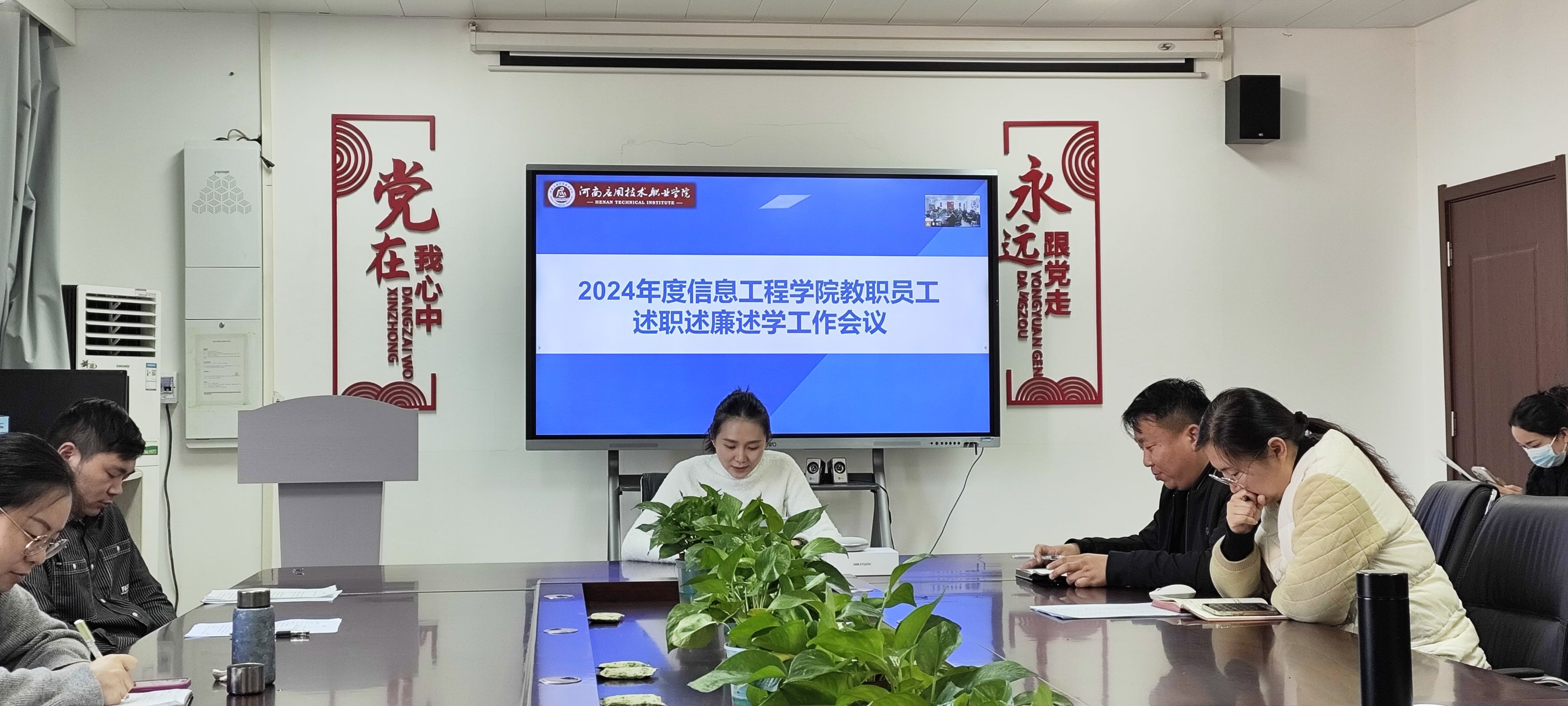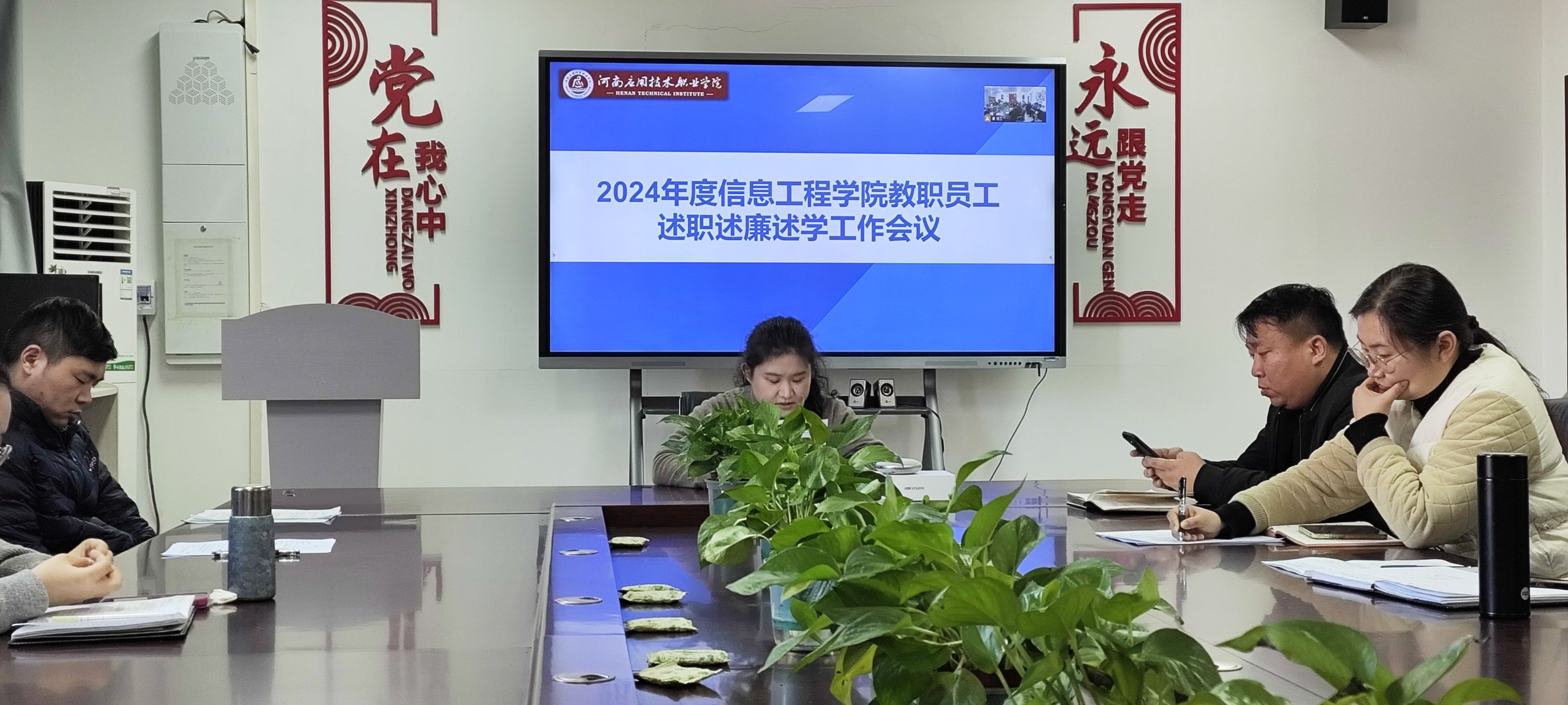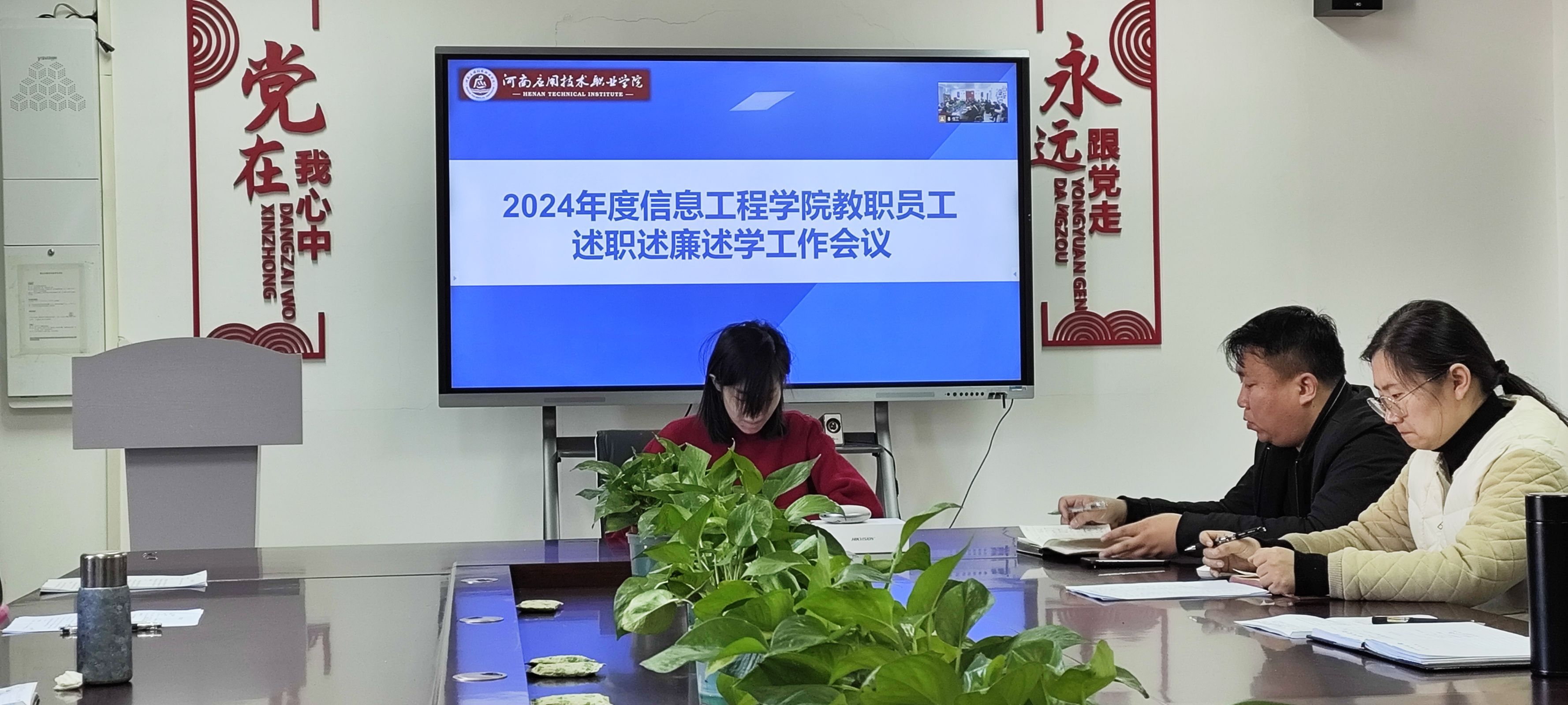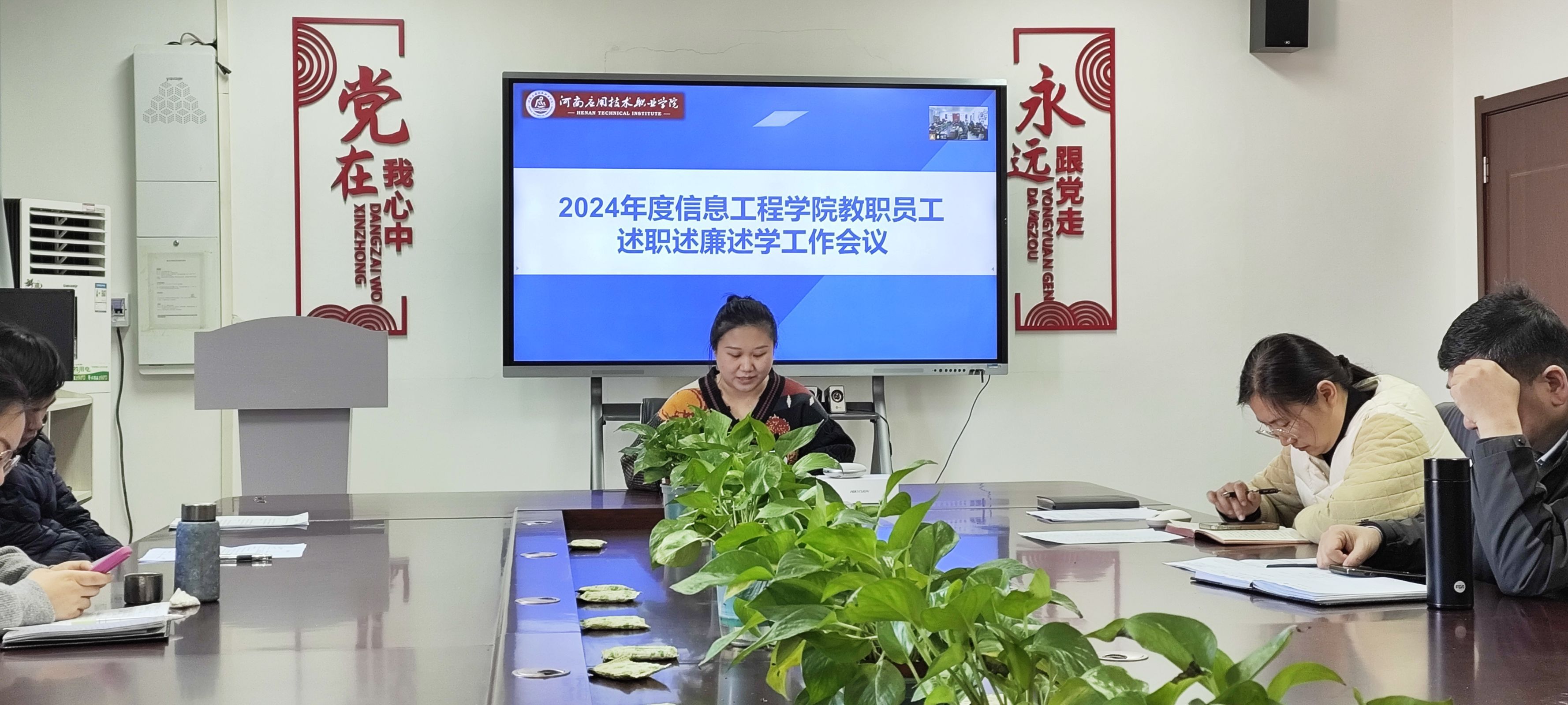 2025年1月15日,2024年度信息工程学院教职员工述职述廉述学工作会议在郑州校区A514、开封校区F314召开。会议由信息工程学院院长王雷主持并发表重要讲话。副院长夏丽珍、齐峰及全体教职工参加。