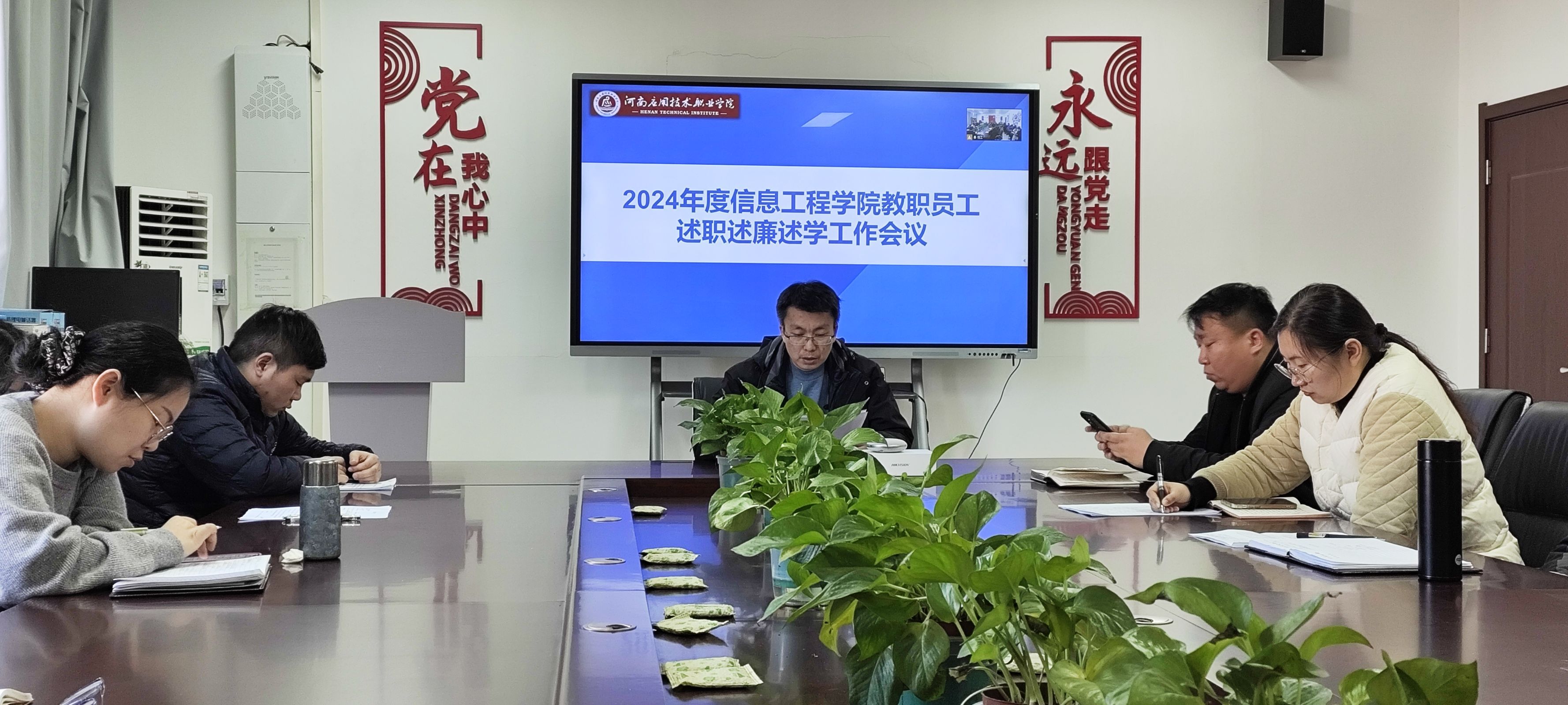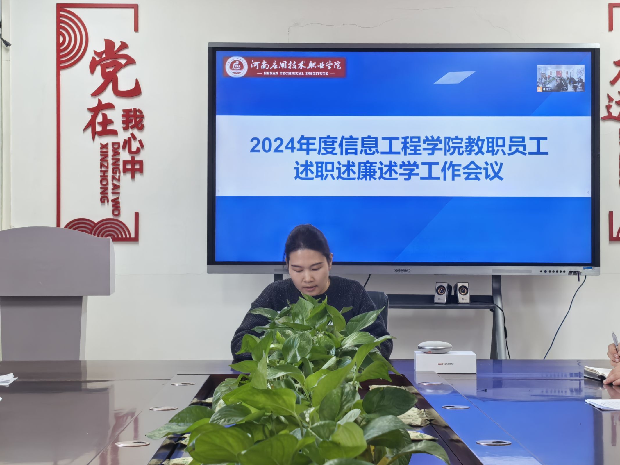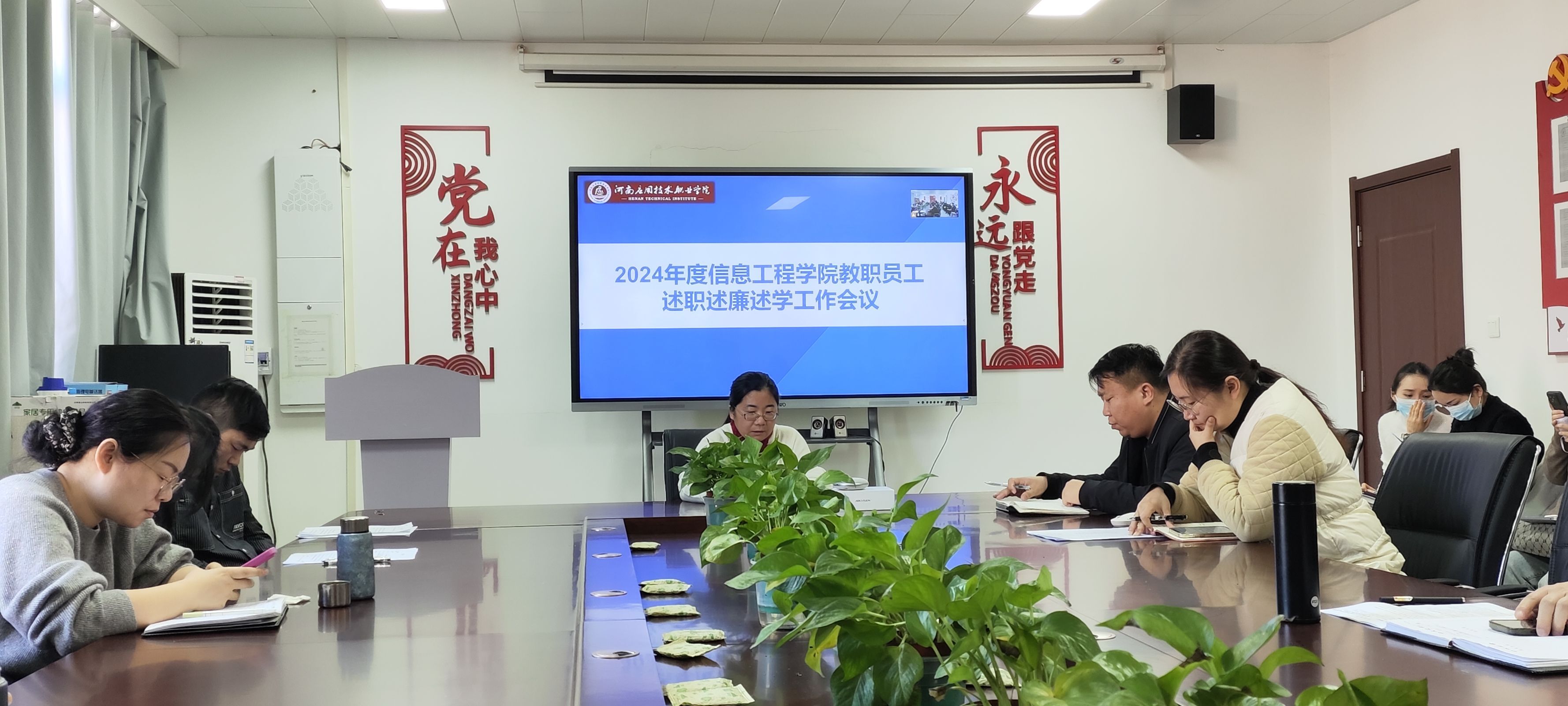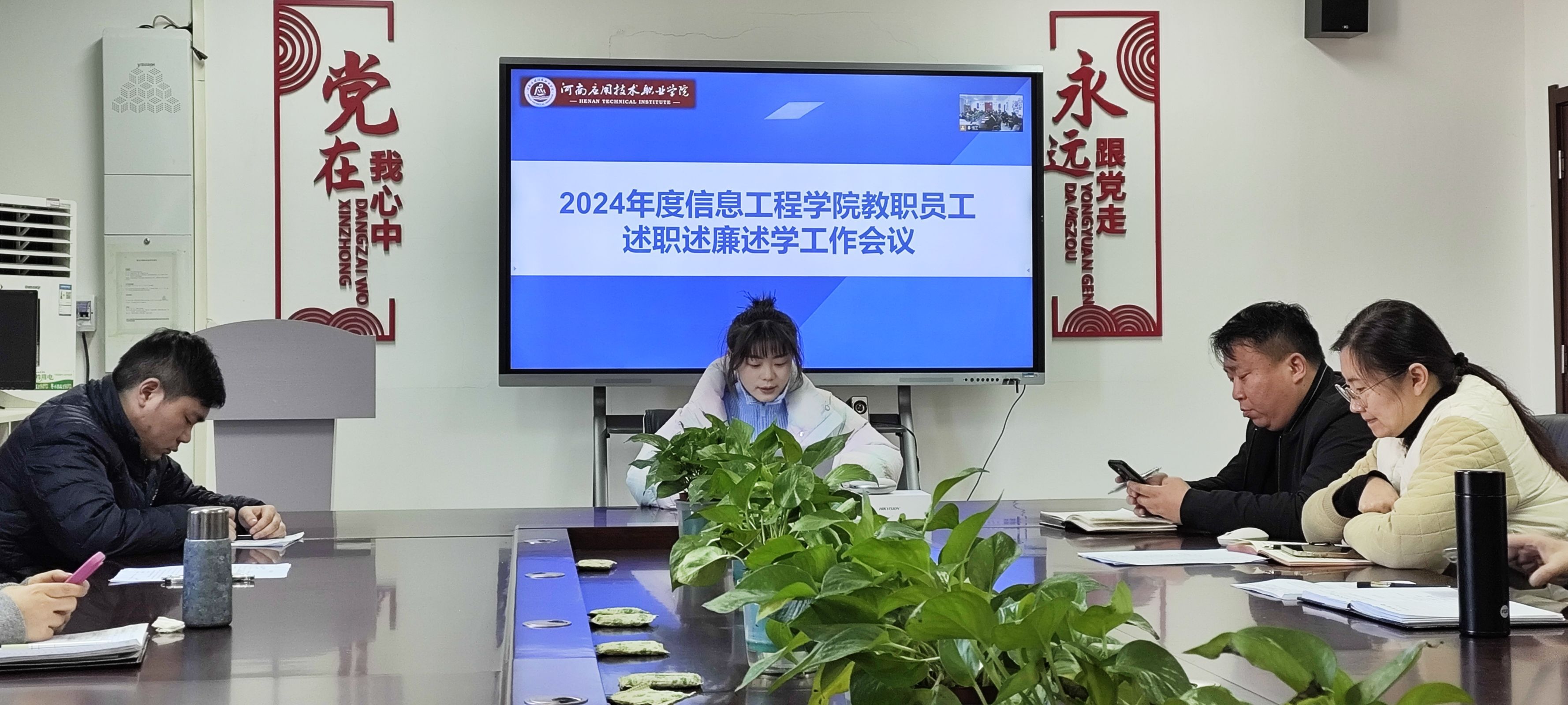2025年1月15日,2024年度信息工程学院教职员工述职述廉述学工作会议在郑州校区A514、开封校区F314召开。会议由信息工程学院院长王雷主持并发表重要讲话。副院长夏丽珍、齐峰及全体教职工参加。