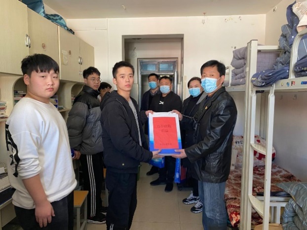 为进一步深化党史学习教育,扎实做好我为群众办实事专项工作,持续推进疫情防控常态化,切实把疫情阻断在校园之外,信息工程学院把学生身体健康放在第一位,同时守护当前来之不易的疫情防控成果。2021年11月23日中午,信息工程学院党总支书记楚斌带队,院长王雷、副院长崔琳和团总支书记赵源等一行数人,深入学生宿舍为学生发送防疫物资。