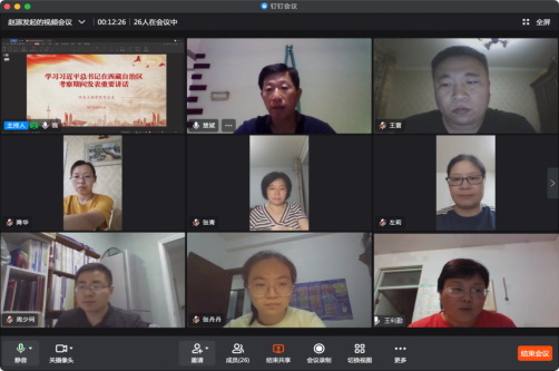 为认真贯彻学习习近平总书记在西藏考察时的重要讲话精神,2021年8月24日晚七点半,信息工程学院党总支组织全体党员通过钉钉会议平台进行网上集中学习。会议由信息工程学院党总支书记楚斌主持。