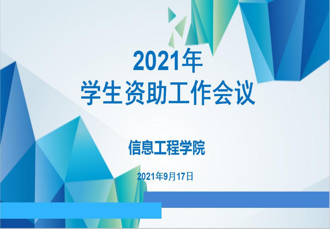 2021年9月17日下午4点,信息工程学院东西校区全体辅导员召开2021年学生资助工作专题会议,安排布置2021年国家奖助学金和评先评优等工作事宜。会议由学工办主任闫莹主持。