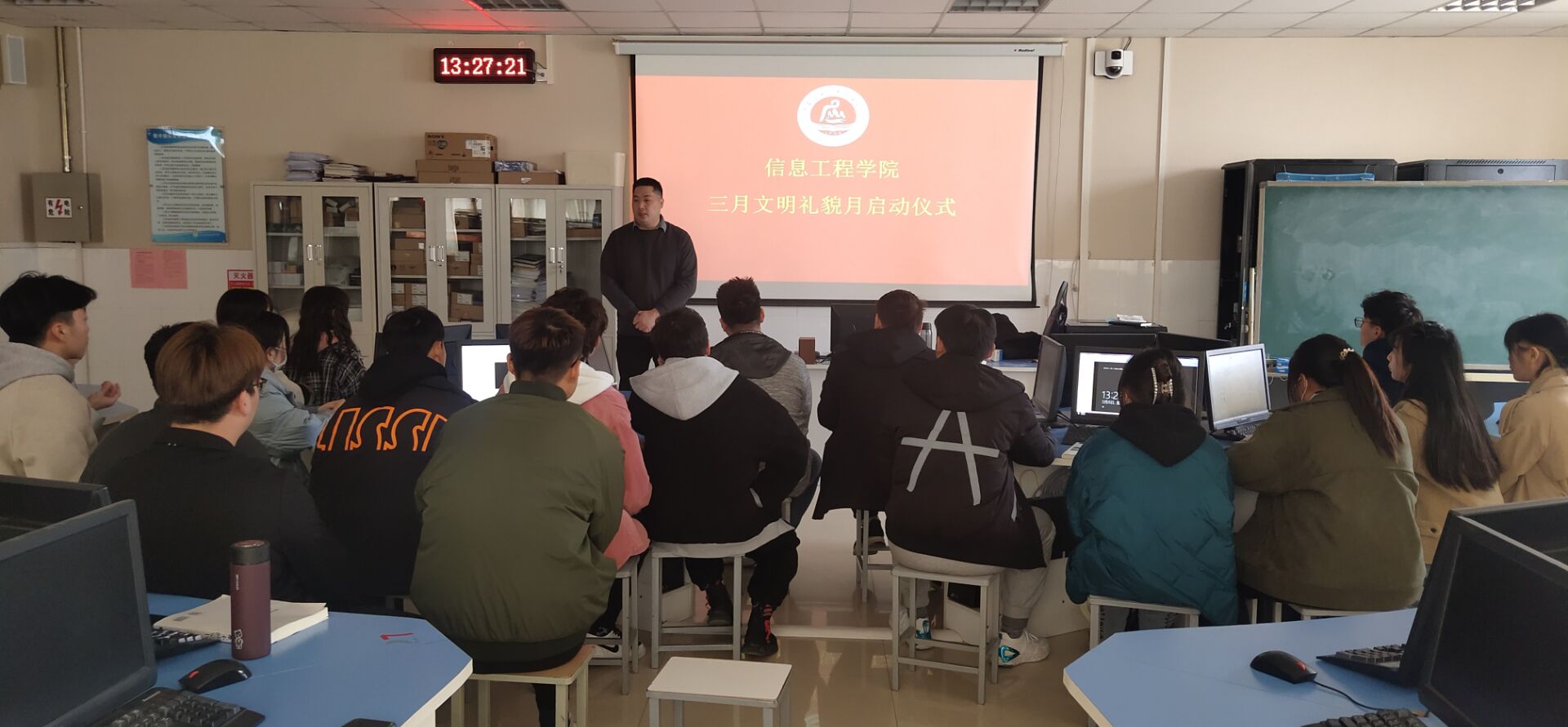 其次,赵老师对三月文化礼貌月活动工作进行安排,各部门分工明确,大家决心在文明礼貌月中展示出信息工程学院的风貌。