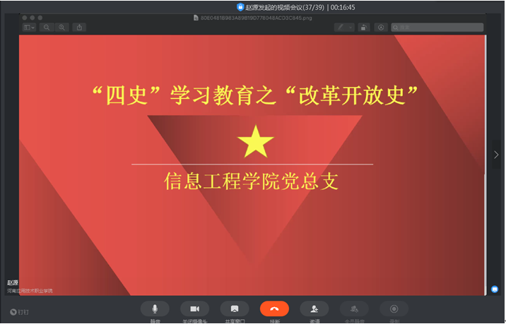 习近平总书记讲,改革开放是改变当代中国命运的关键一招。为深入学习贯彻习近平总书记关于“四史”学习的讲话精神,2020年8月19日信息工程学院党总支召开网络视频会议组织全体职工及19级学生开展“四史”学习教育之“改革开放史”活动,会议由党总支副书记杨明杰主持。会议首先由党总支书记楚斌同志围绕三个方面讲述中国共产党领导下的改革开放史。第一方面,改革开放的业绩与成就:经济质量显著提升;人民生活水平极大提高;社会生产力高速发展;科学技术日新月异;文化事业繁荣发展。民生改革阔步前进。第二方面,改革开放成功的原因分析:发展道路的正确选择;市场改革取向的坚持;经济重心工作的发展;全球开放化进程的融入。第三方面,改革开放的未来思考:中国要向国人、世界表明改革开放的坚定意志决心;中国要通过新一轮扩大开放来为全球经济化树立“中国榜样”;中国要勇于打破国际固守保护主义和精致利己主义的“零和思维”战略桎梏。接下来,大家共同观看视频《我们一起走过》第1集 弄潮儿向涛头立。