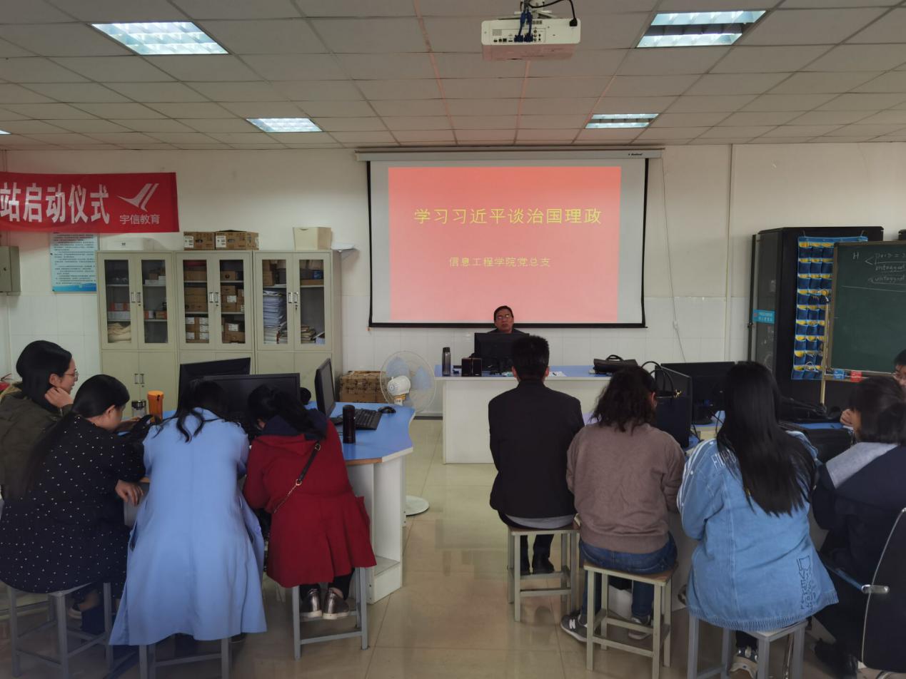 为深入学习领会习近平新时代中国特色社会主义思想,2020年10月6日下午,信息工程学院党总支分别在东西校区召开专题会议,开展以学习《习近平谈治国理政》第三卷专题四、专题八和专题十为主要内容的主题党日活动,信息工程学院党总支书记楚斌同志及副书记杨明杰同志分别主持了会议并对有关内容进行了解读,主要内容如下: