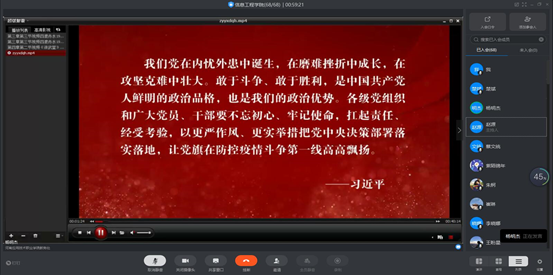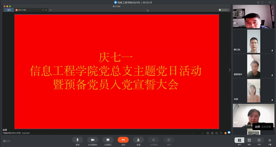 为庆祝中国共产党成立九十九周年,引导广大党员筑牢信仰之基,补足精神之钙,砥砺初心使命,锤炼坚强党性,争当先锋表率,2020年7月1日信息工程学院党总支组织三个支部的全体党员及朱舸等40名学生预备党员隆重集会,开展以“牢记初心使命,争当出彩先锋”为主题的支部党日活动及预备党员入党宣誓大会。会议由信息工程学院党总支副书记杨明杰同志主持,主要议程如下: