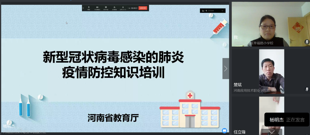 为进一步做好新冠肺炎疫情防控工作,普及防控科普知识,提升防控安全意识,全面做好师生返校前的卫生安全防护教育,根据学校新冠病毒肺炎疫情防控办公室的通知要求,2020年3月24日下午,信息工程学院组织东西校区全体职工开展了 “新冠肺炎疫情防控知识教育专题”活动,全体学生在辅导员的组织带领下同步进行。本次活动采用钉钉直播平台,由信息工程学院党总支副书记杨明杰同志主持,杨书记首先带领全体老师认真学习了河南省教育厅提供的相关课件和视频,主要包括传染病防控的有关知识、病毒的有关知识、新冠病毒感染的肺炎有关知识、新冠病毒感染的肺炎防控有关知识等。