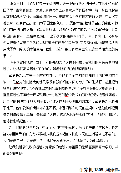 清明时节忆先烈、倡导文明健康的祭祀新风。信息工程学院18级入党积极分子以“撰写缅怀文章、朗诵清明诗文(短视频或音频记录)、制作思念卡”等祭奠活动来表达对那些用生命为我们带来春天的英雄们:“愿寒冬不再凛冽、愿春日常在、山河犹在。”、“向逝者默哀 向英雄致敬。”