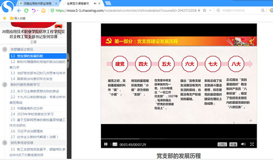 为提升党课教育实效,创新党员教育形式,充分发挥党员的先锋模范作用,信息工程学院党总支指导教工党支部通过开展支部书记微型党课、翻转课堂党课等多形式党课,有效激发党员活力。