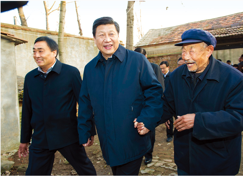 2013年11月24日至28日,中共中央总书记、国家主席、中央军委主席习近平在山东考察。 这是25日下午,习近平在地处沂蒙老区的临沭县曹庄镇朱村亲切地拉着83岁的“老支前”王克昌的手去他家看望。 新华社记者 谢环驰/摄
