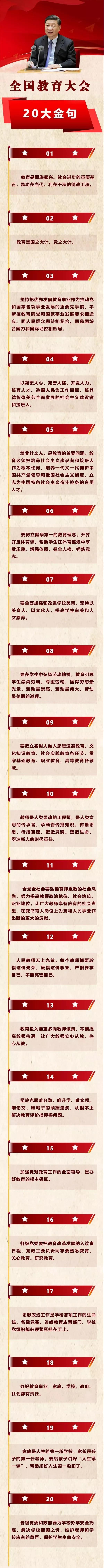 全国教育大会10日在北京召开了!习近平总书记出席会议并发表了重要讲话。这里为大家整理了这20大金句,火速分享↓↓↓