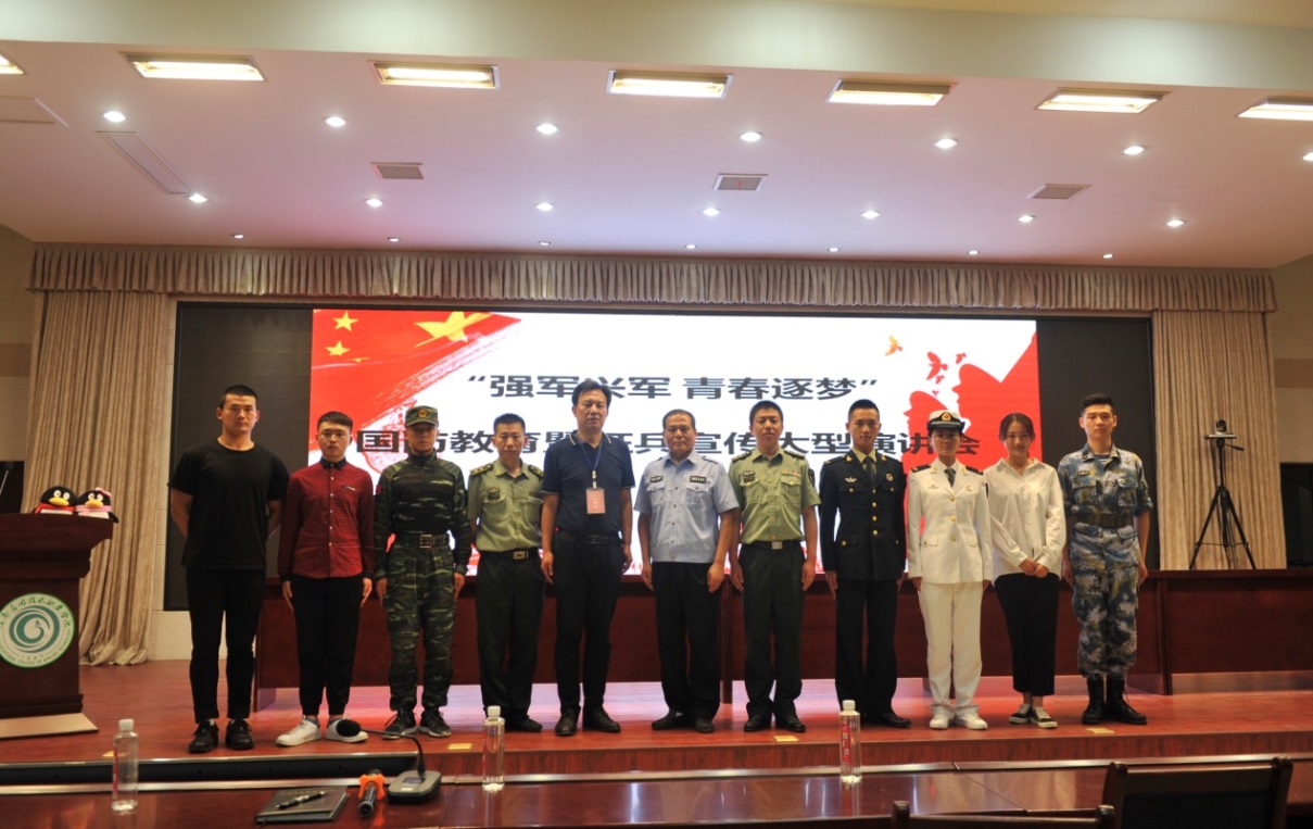 2018年5月17日下午我校和郑州市警备区联合举办的“强军兴军、青春逐梦”国防教育暨征兵宣传演讲会在我校学术报告厅成功举办。中原区人武部副部长李亚东、郑州警备区政治工作处科长关团结、我校学生处处长兼武装部部长马伟强、保卫处处长刘晓刚出席,500余名师生参加了本次活动。