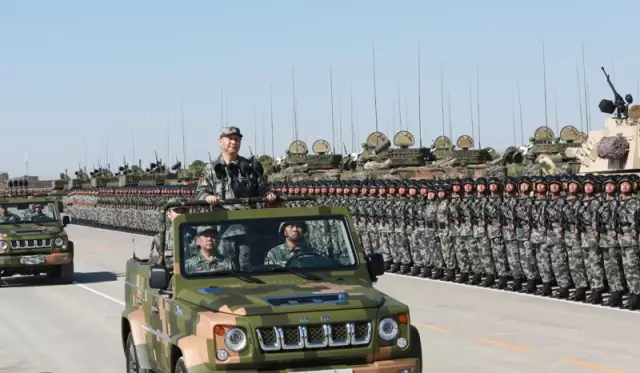 在激昂的阅兵曲声中,习近平乘车依次检阅护旗方队、人员方阵、装备方队。“同志们好!同志们辛苦了!”习近平向受阅部队表示亲切问候。“主席好!为人民服务!”官兵们的回答声震长空。习近平乘检阅车返回检阅台时,受阅官兵齐声高呼:“听党指挥、能打胜仗、作风优良。”铁阵如山,口号如潮。