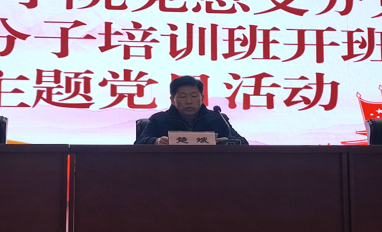 随后会议进行第三项,我院党总支书记楚斌同志发表动员讲话,他首先对本次参加培训的入党积极分子表达了诚挚的祝贺和热烈的欢迎;并向同学们提出了三点意见:提高政治站位,深刻领会举办入党积极分子培训班的重要意义;树立正确的入党动机,充分发挥模范带头作用;端正学习态度,保证学有所获。