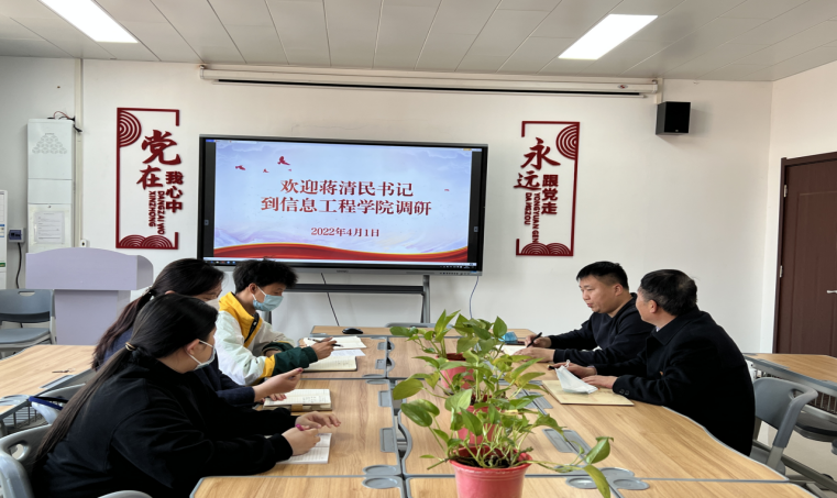 为落实领导班子成员联系院(部)工作制度,持续推进我为群众办实事走深走实,2022年4月1日上午,学校党委副书记蒋清民同志赴信息工程学院展开调研。