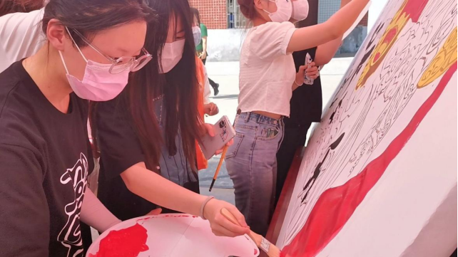 5月3日,信息工程学院组织开展“百人百笔绘团史”活动。在我校操场铺开的画布面前,路过的学生纷纷拿起调色板,以青春之笔,铭记百年团史、凝聚奋进力量。“我们从两周前就开始准备,事先在画布上起好线稿,方便没有绘画基础的同学参与活动,我们还为他们指导配色,保证作品的完成质量。”视觉传达2001班包容豪介绍道。此次活动将思想政治教育、理想信念锻造融入校园文化,将团史学习与视觉传达、动漫设计等艺术专业相结合,引导广大师生在艺术创作中,传承“五四精神”,营造庆祝建团百年的浓厚氛围。