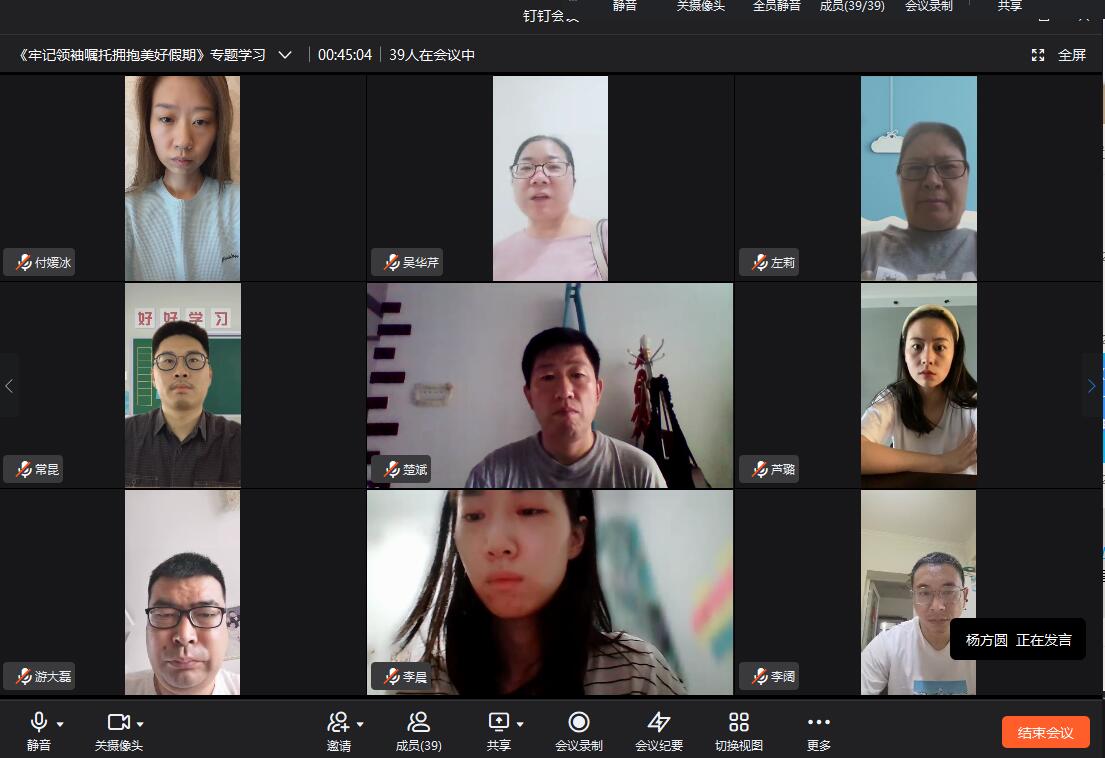 为贯彻落实学校2022年度6月大中小学思政课集体备课的通知要求,统筹推进思政课一体化建设及假期教育引导青少年过一个有意义的暑假,2022年6月27日上午信息工程学院党总支通过钉钉会议形式组织全体教师开展主题党日活动。