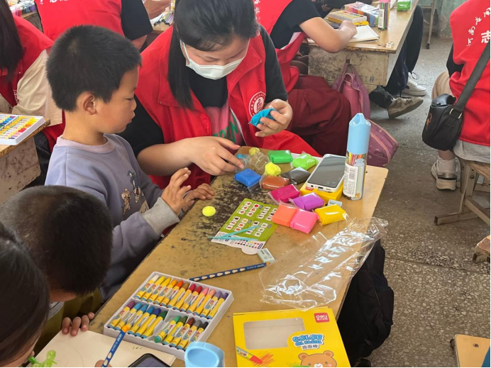 座谈会后,崔琳一行来到黄岗小学开展关爱乡村留守儿童活动,学院党员教师和学生入党积极分子为小朋友们开展艺术启蒙教育,带领一、二年级的小朋友练习简单的基础绘画,小朋友通过实践启发思维、展开联想,绘制带有自我风格的卡通图画。活动中,学院师生和黄岗小学的小朋友建立了深厚的情谊。活动最后,信息工程学院师生为小朋友们送上了绘画工具,希望他们的课余生活更加丰富精彩。