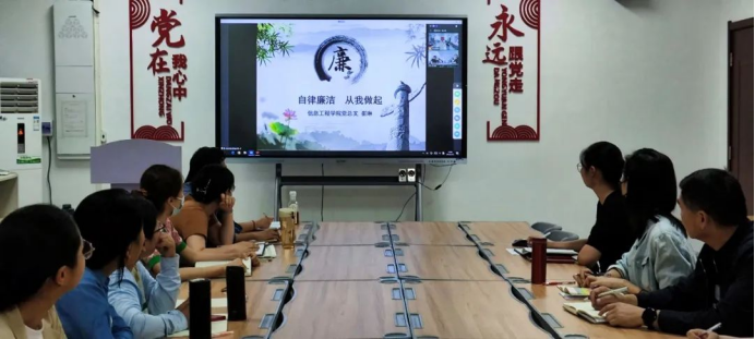 为深入贯彻落实《河南应用技术职业学院清廉学校创建行动工作方案》的通知,全面推进清廉学校创建行动,不断优化政治生态,营造风清气正良好育人环境,办好人民满意的教育。2023年5月23日,信息工程学院党总支组织东西校区全体党员及教职工,在西校区A514、东校区A314会场,以腾讯会议连接,开展清廉学校创建之《自律廉洁 从我做起》主题党课学习活动。本次党课授课由信息工程学院书记崔琳主持,全体党员及教职工参加会议。