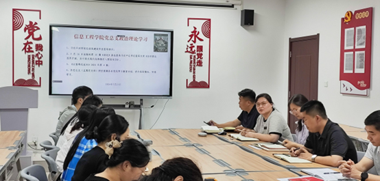 2024年5月21日,信息工程学院党总支组织东西校区全体党员及教职工,在西校区A514、东校区C314以腾讯会议视频连接,开展政治理论学习活动。本次学习活动由信息工程学院党总支书记崔琳主持,全体党员及教职工参加会议。主要学习内容有:1、习近平对学校思政课建设作出重要指示;2、5月16日出版的第10期《求是》杂志发表习近平总书记重要文章《全面深化改革开放,为中国式现代化持续注入强劲动力》;3、《以案释纪说法》2024年第4辑。