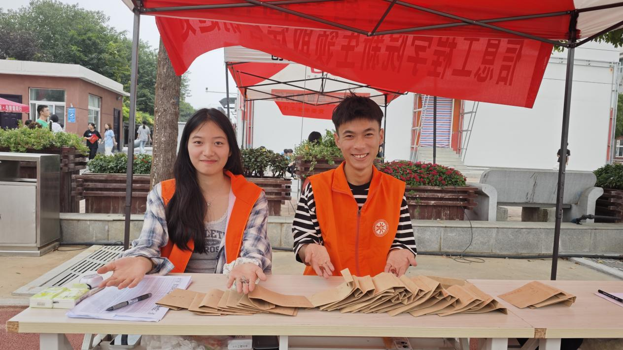 在清晨的第一缕阳光中,志愿者们早早地来到了迎新现场,他们身着统一的橙色马甲,脸上洋溢着热情的笑容,为新生们提供热情周到的服务。