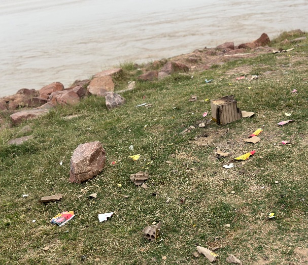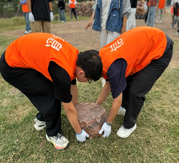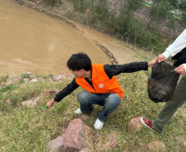 活动中,志愿者们分工协作,有的弯腰细拾,将杂草中细微的烟头纸团捡到垃圾袋内,有的专注于将地面大片纸巾、烟盒夹起来,还有的将乱放的石头归于原处。经过一番辛勤努力,黄河堤岸一角展现出原有的整洁与生态美。