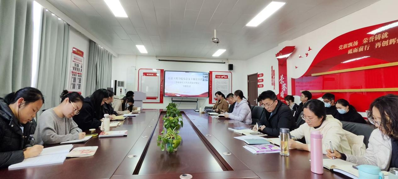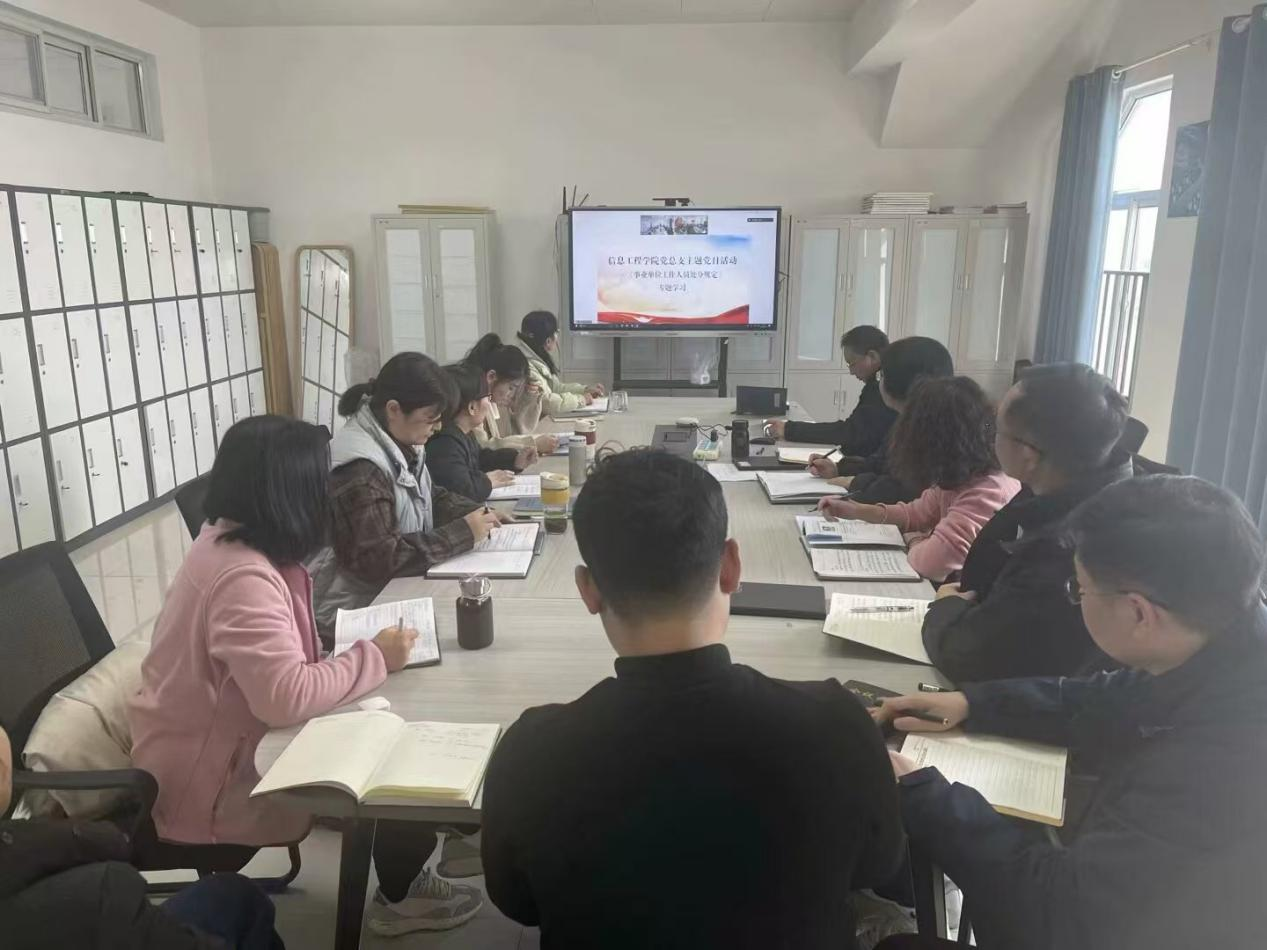 为进一步巩固深化党纪学习教育成果,确保全院教师依法履职、筑牢底线,不断巩固风清气正的政治生态。2025年2月25日,信息工程学院党总支开展《事业单位工作人员处分规定》专题学习主题党日活动。此次专题学习由信息工程学院党总支书记崔琳主持,信息工程学院全体教师参会。