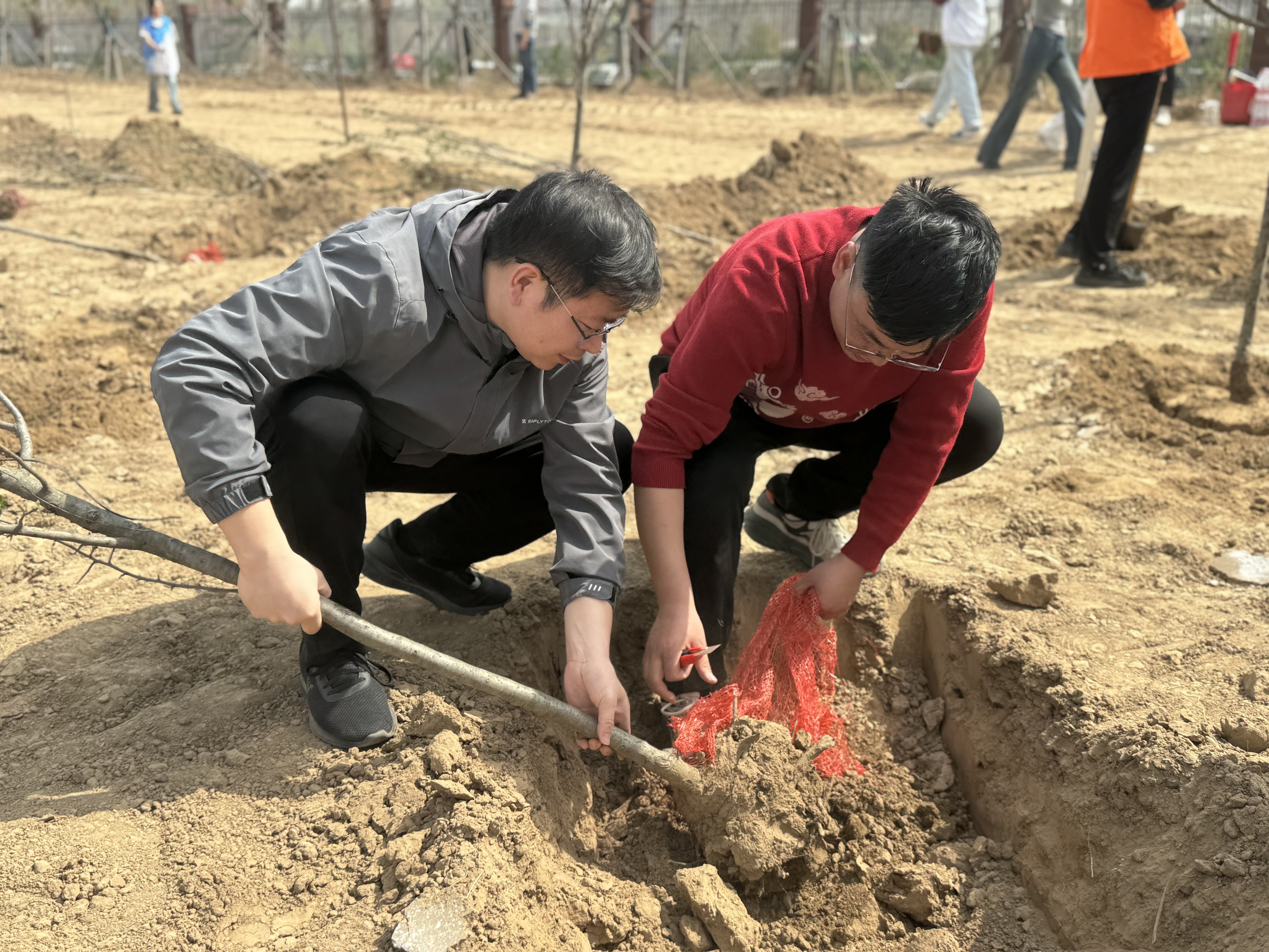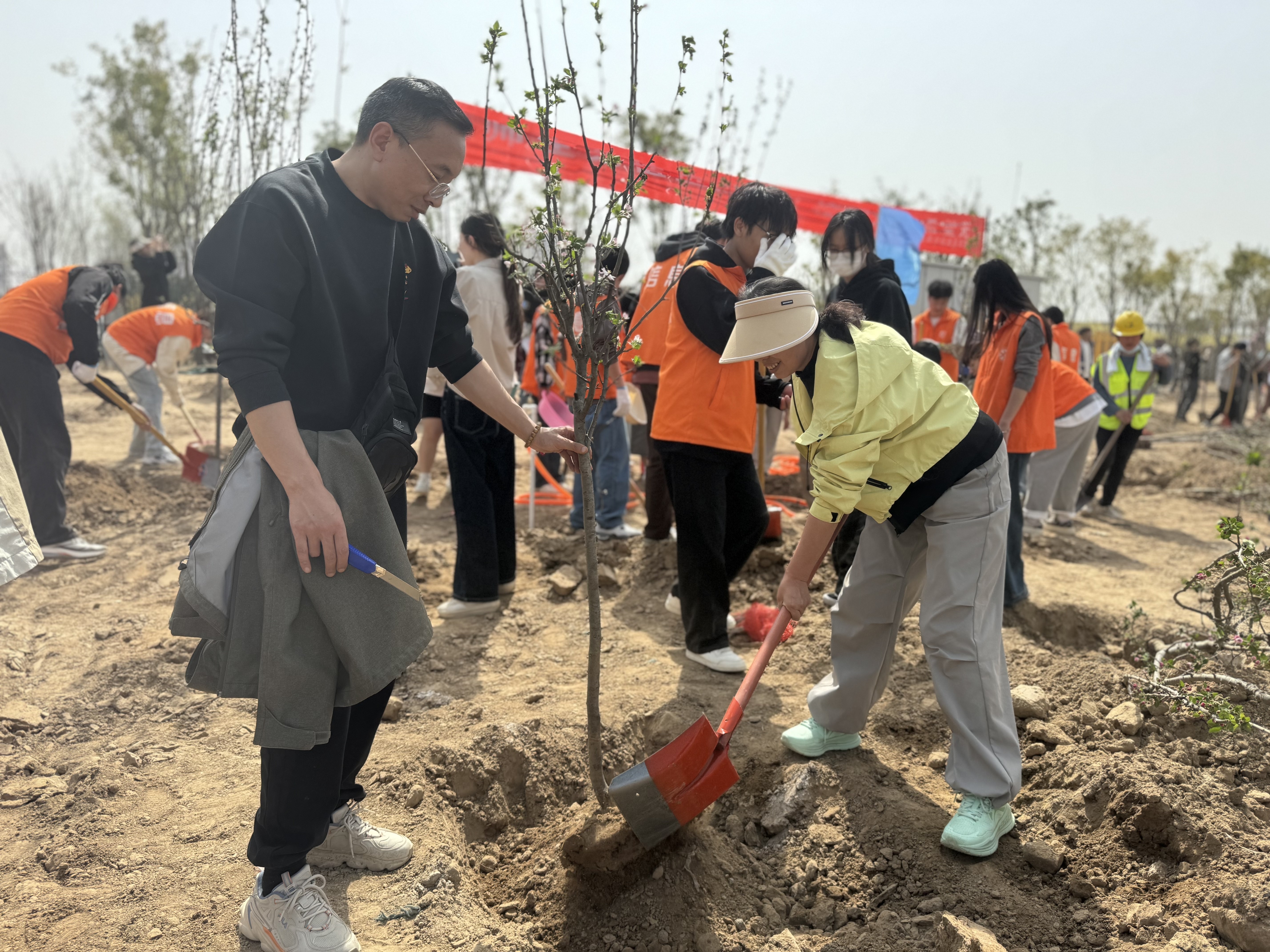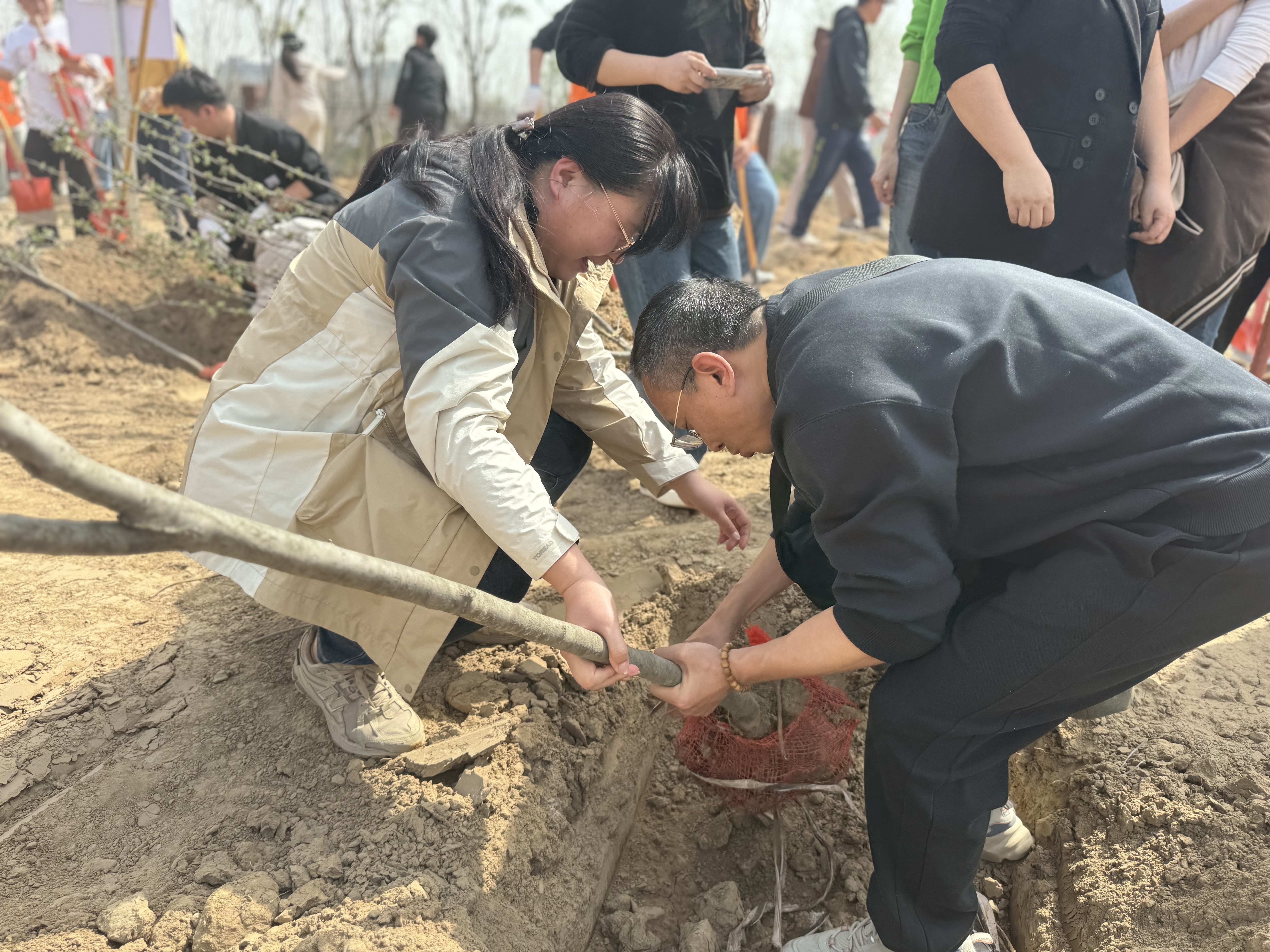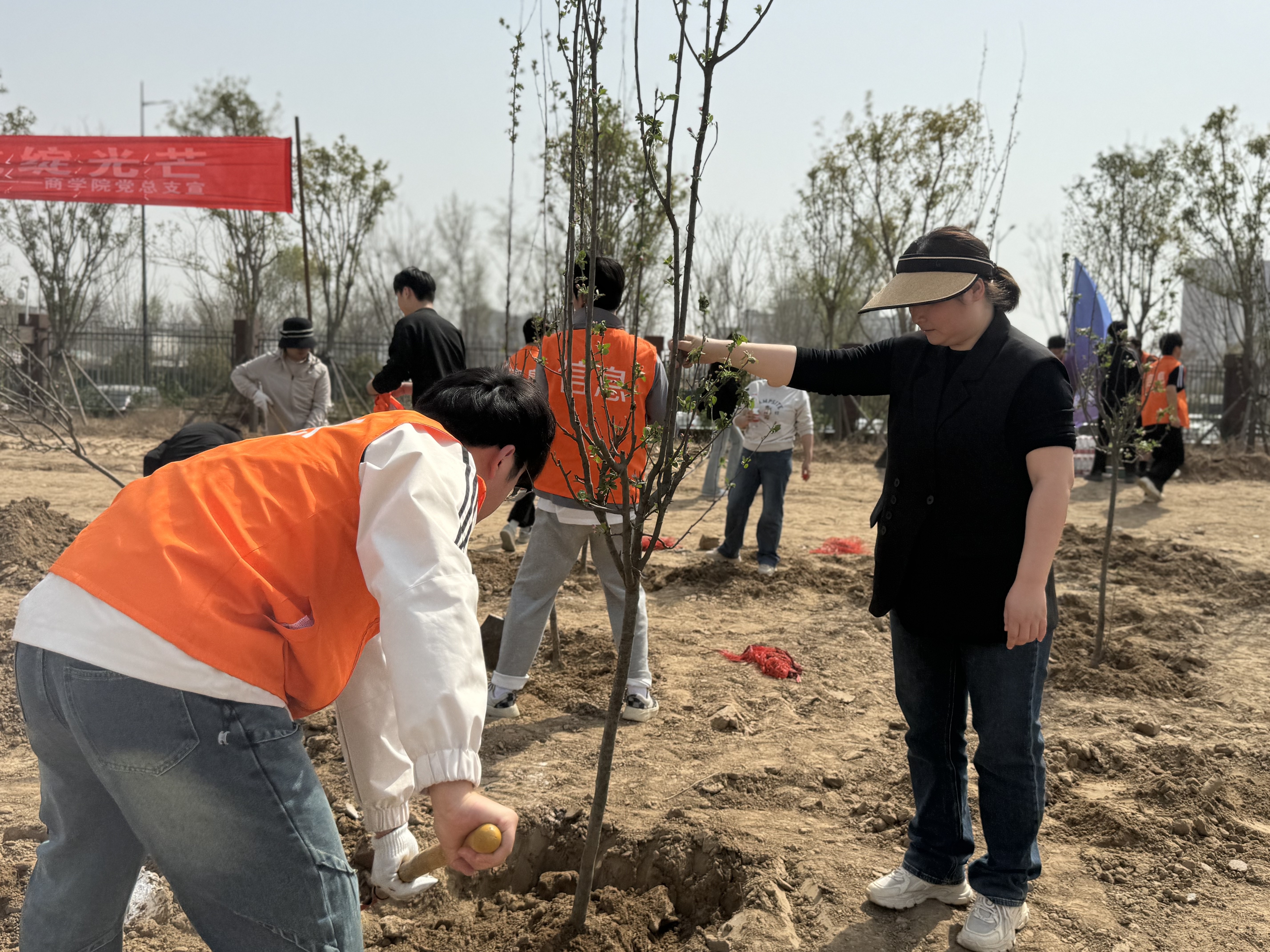 春和景明暖阳日,植树添绿正当时。为深入宣传贯彻习近平生态文明思想,进一步弘扬雷锋精神和“奉献、友爱、互助、进步”的志愿精神,结合学雷锋实践活动,2025年3月25日,信息工程学院党总支书记崔琳率43名党员、团员代表,在开封校区北院开展“党建引领添新绿,义务植树践初心”义务植树主题党日活动,共同以实际行动为应院增添新绿,助力生态文明建设。