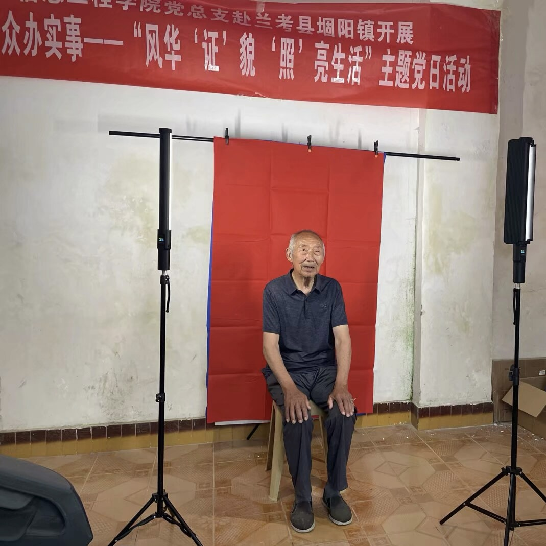 活动筹备阶段,双方党组织多次沟通协调,精心规划流程、调配物资,为活动顺利开展奠定基础。活动现场,信息工程学院党员师生充分发挥专业优势,与堌阳镇党员干部紧密配合。他们迅速搭建起临时摄影棚,调试好相机、灯光等专业设备,布置温馨且有序的拍摄环境。活动面向全体居民开放,不少群众闻讯早早来到现场排队等候。