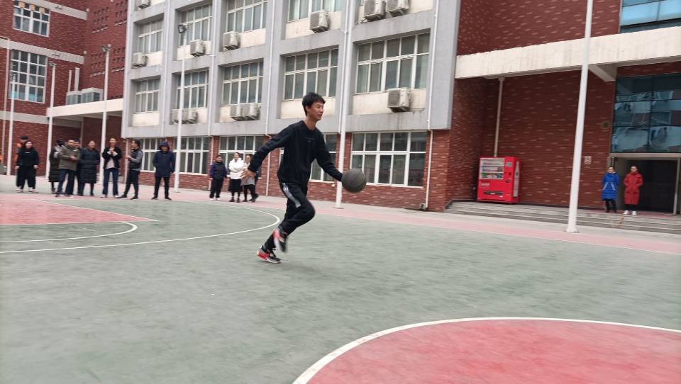 教职工们精神饱满、热情洋溢、根据规则合理分配人员分组,大家相互喝彩和鼓励,整个篮球场上洋溢着轻松、欢乐的气氛。一旁观战的学生也不自觉的为老师加油助威。天气虽然寒冷,但依旧影响不了信息工程学院教师们的专注比赛的内心。