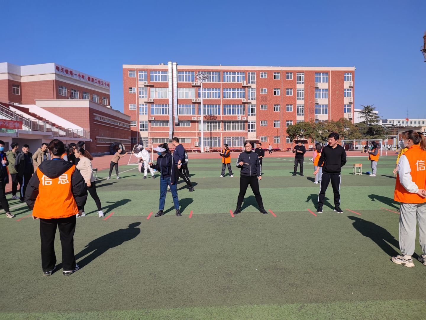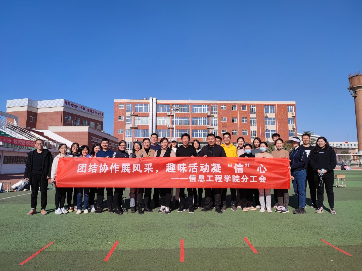 为丰富教职工文化生活,促进教职工增强体魄,让教师们放松身心,缓解工作压力,切实增强分工会组织的吸引力、凝聚力和战斗力。信息工程学院分工会于2021年11月25日中午12点45分别在东、西校区体育场同时组织开展以“团结协作展风采,趣味活动凝“”信心”为主题的教师健身活动。我院书记楚斌、院长王雷及全体教职工参加了此次趣味活动。