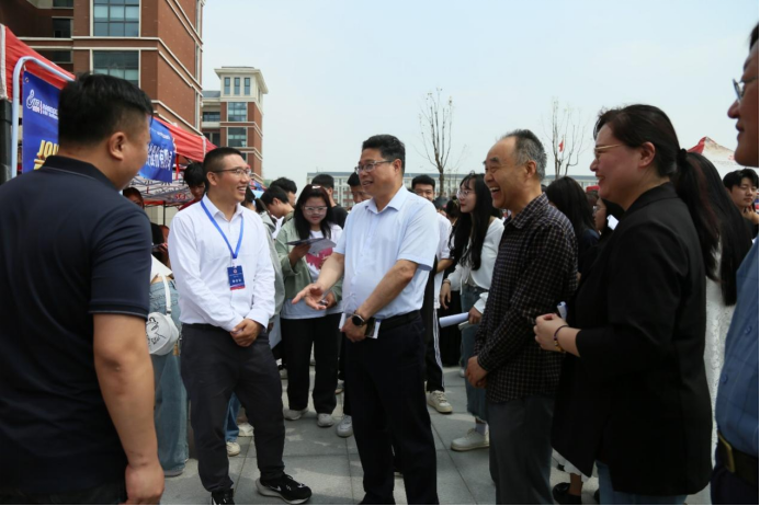 校领导走进双选会现场,详细了解招聘单位的行业分布和用人需求情况,耐心询问学生的求职需求和求职意向,认真听取用人单位对我校毕业生的就业反馈和对学校人才培养的意见建议,并对企业来我校参加双选会表示衷心的感谢。