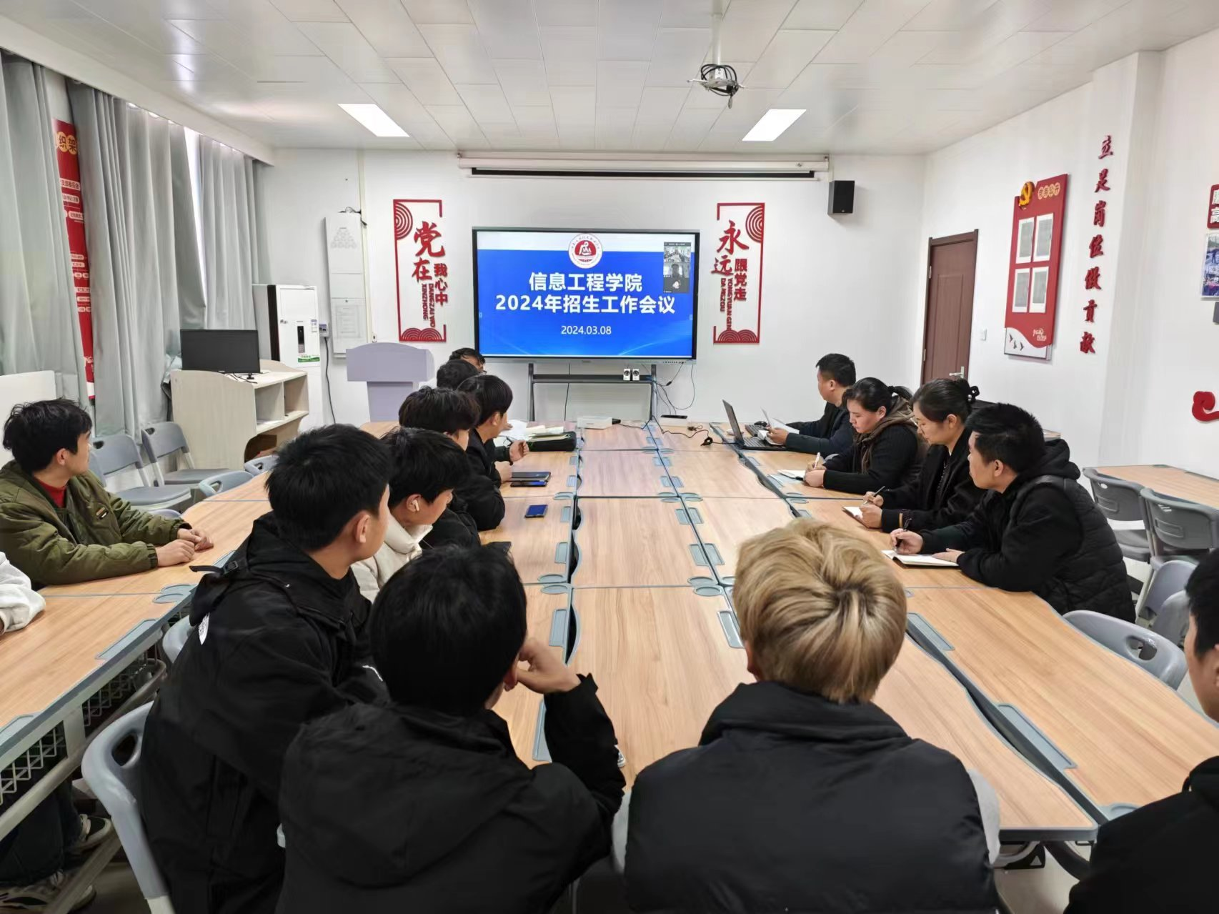 3月8日信息工程学院在郑州校区A514开封校区C314同步召开2024年单独招生工作会议,信息工程学院院长王雷、书记崔琳、副院长齐峰、副院长夏丽珍、副书记蒋欣哲、负责招生的老师参加会议。会议由学工办主任常昆主持。
