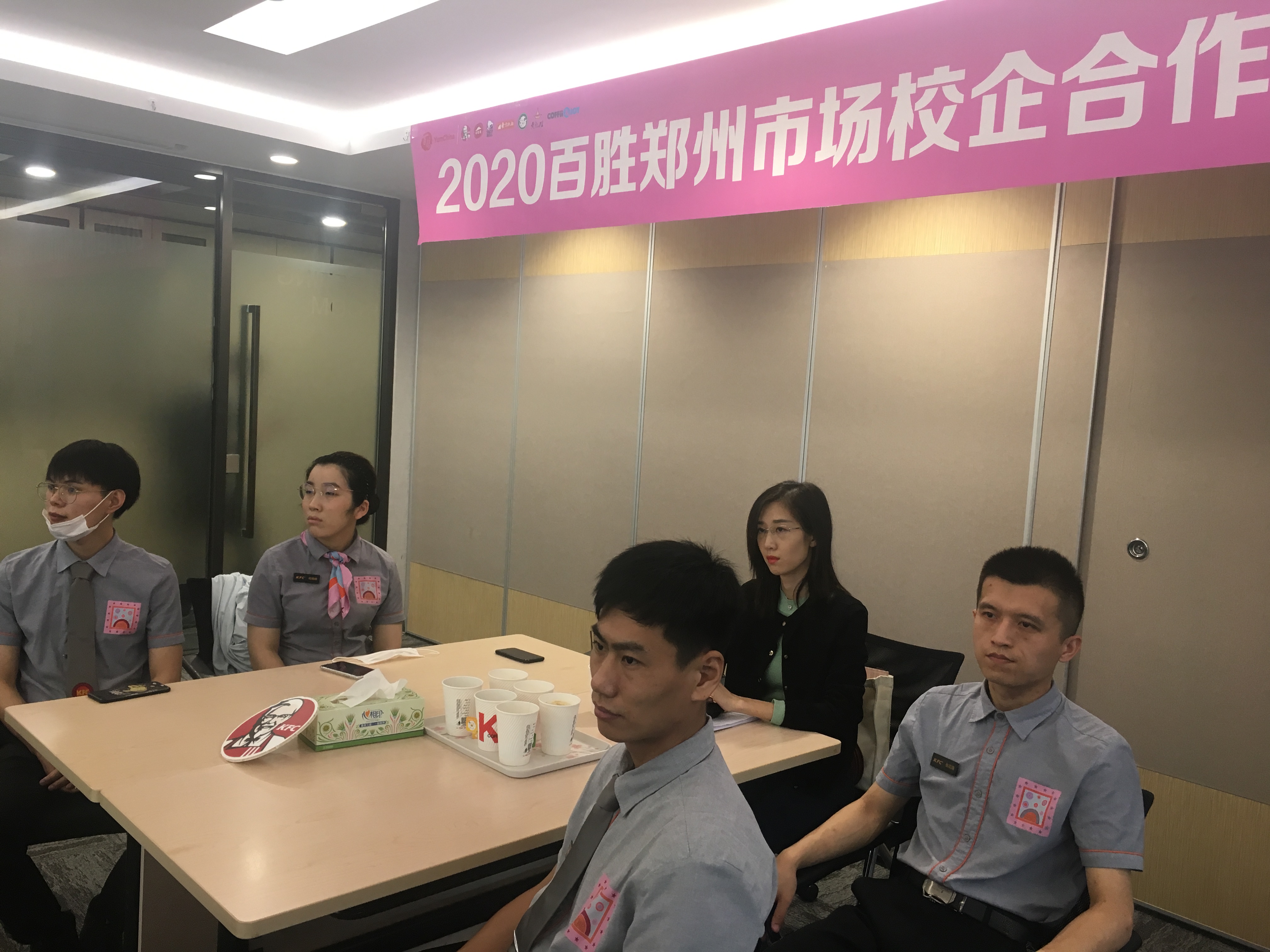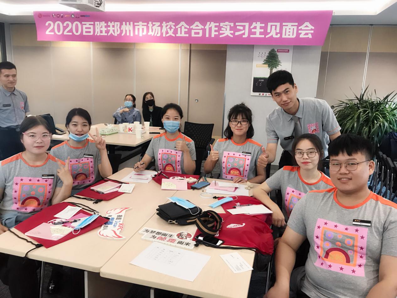 2020年6月17日上午,百胜郑州市场校企合作信息工程学院实习生见面会在百胜中国控股有限公司郑州市场会议室隆重举行,信息工程学院就业负责人李晨,百胜中国郑州肯德基有限公司招募主管校企合作项目负责人李永洋,招聘经理李国鹏及4位分店店长出席本次见面会。