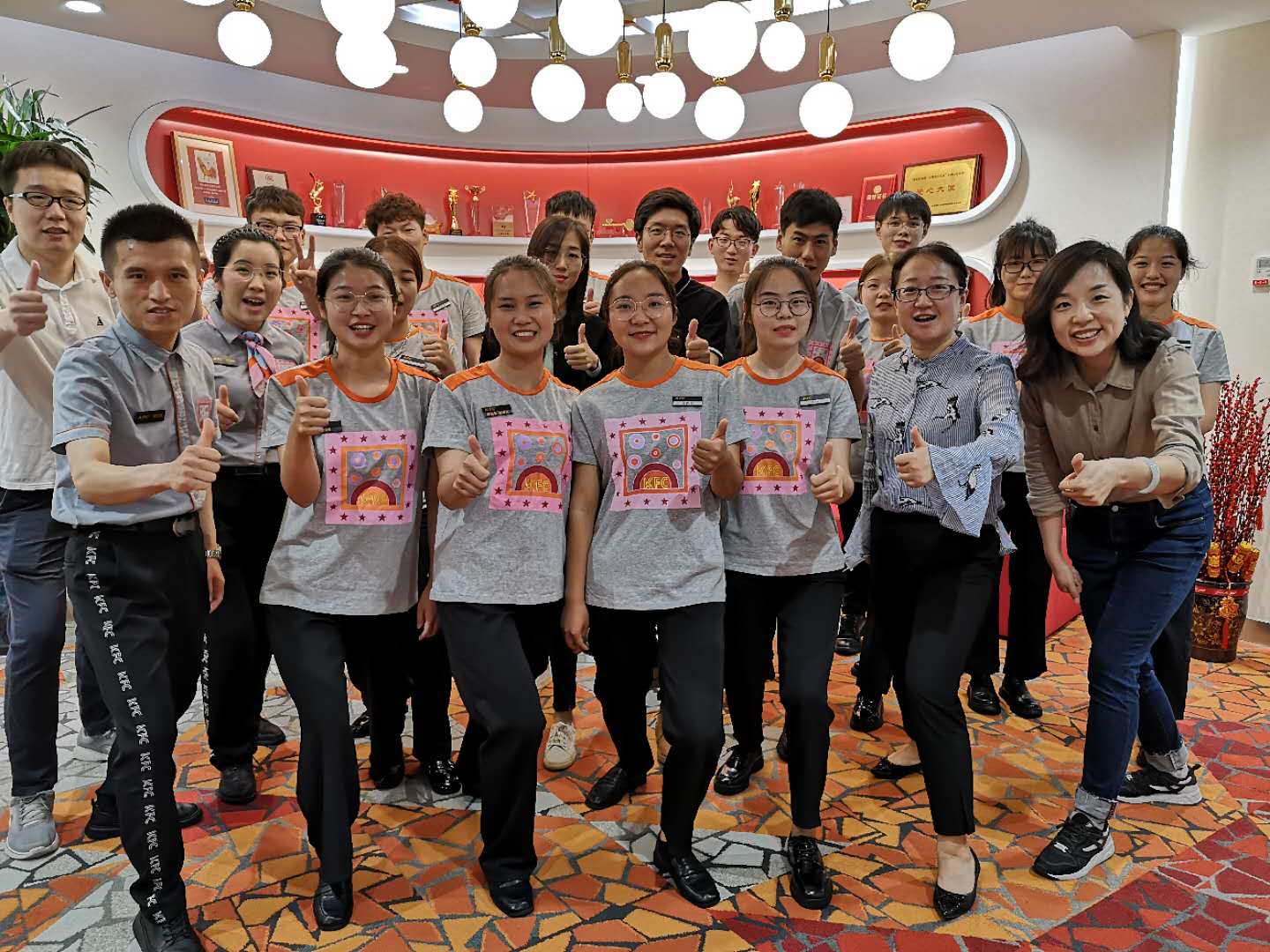 合影留念后,同学们跟随自己的店长到店面报到,正式开启了自己的职业生涯。
